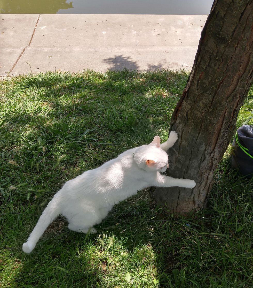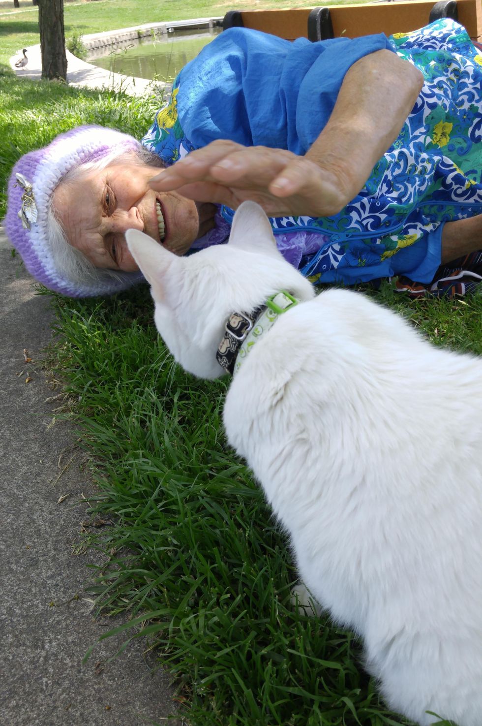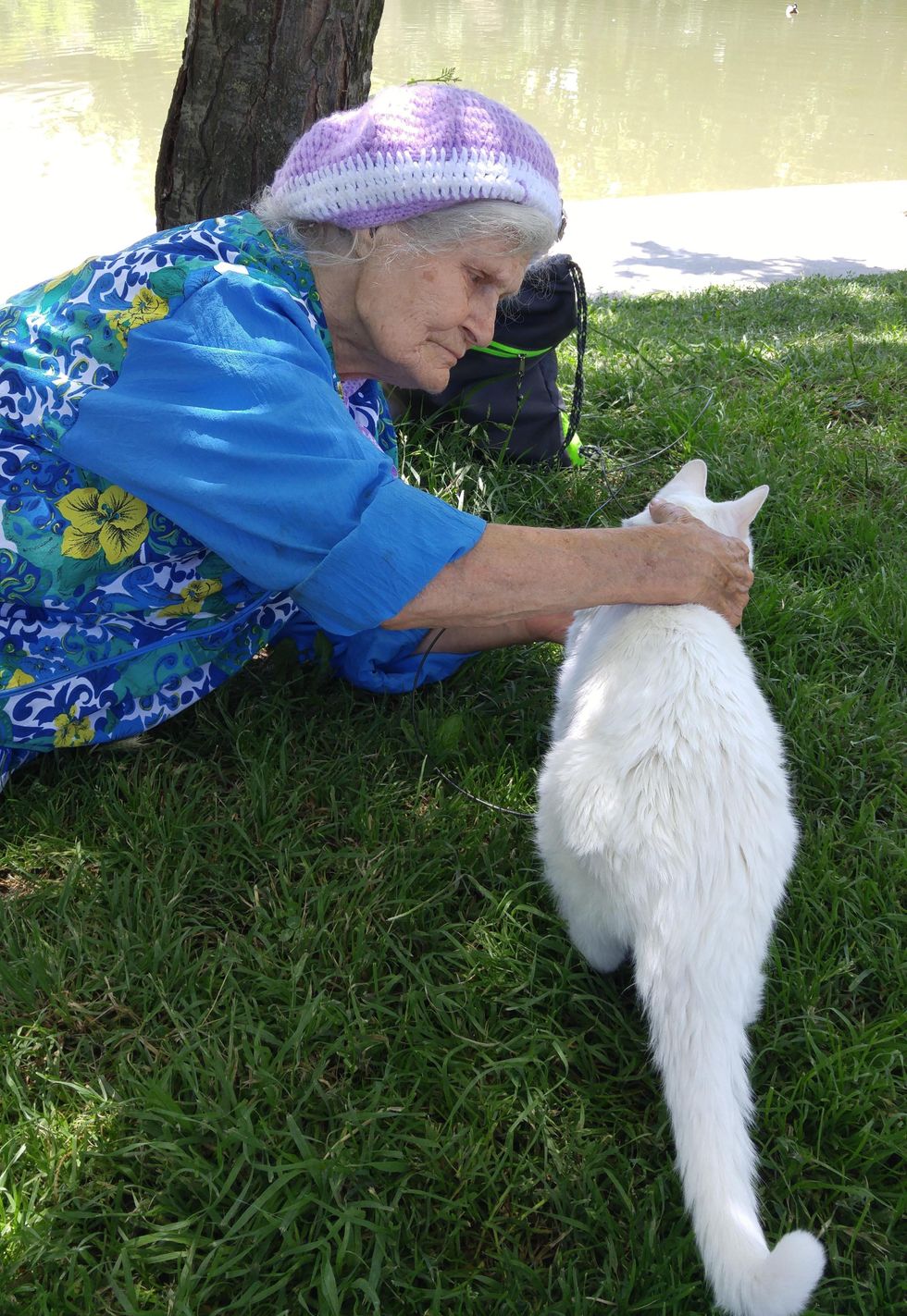 A 17-year-old cat befriended an 85-year-old woman in a park. Not only did he bring comfort and a big smile to her face, but both of them felt young again.