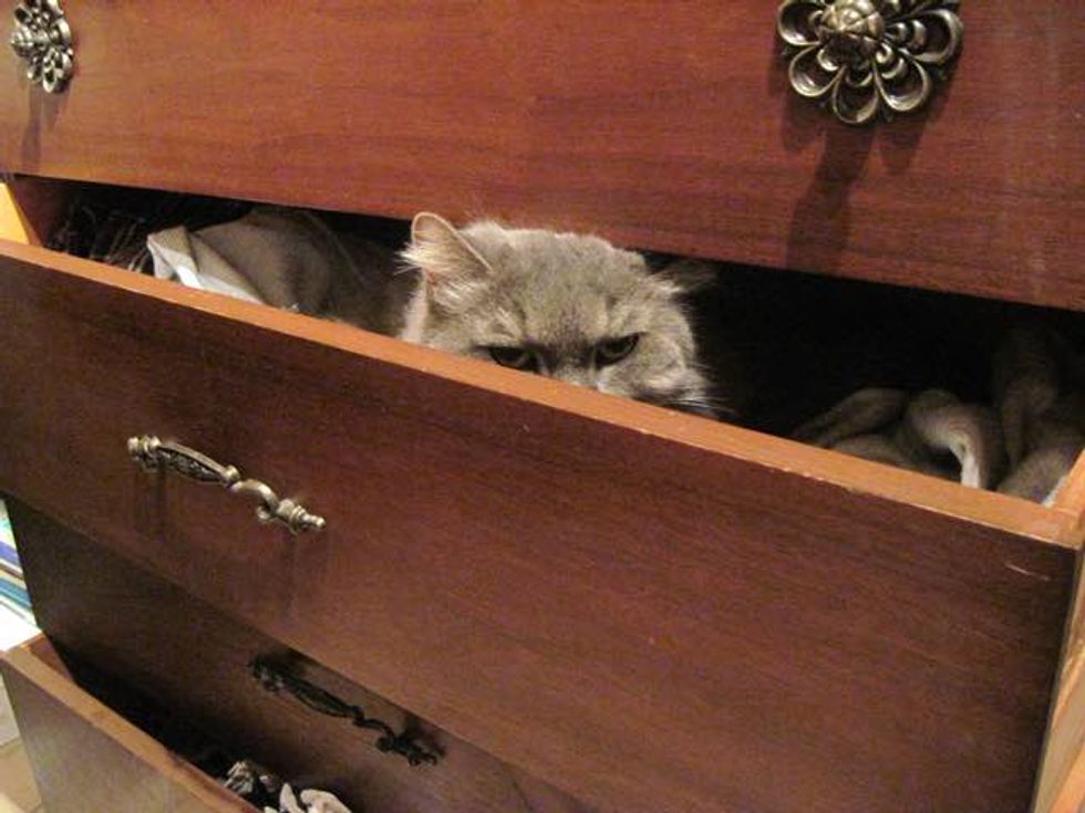 Spooks retreated back into the drawer to sleep on my clothes, should the opportunity arise.