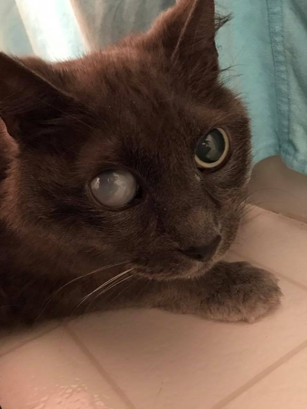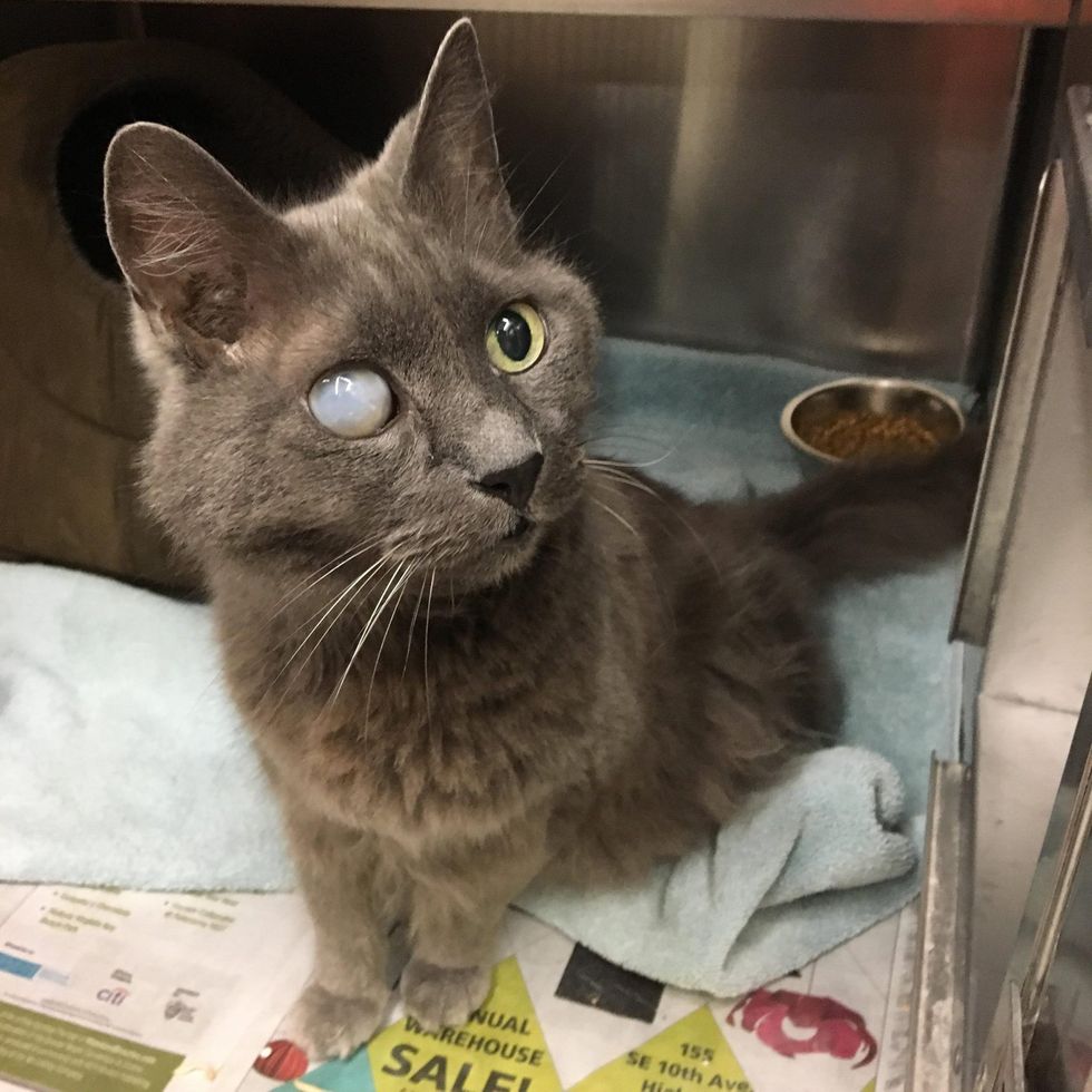 "I was still one cat down from my limit. I was kind of looking for another old cat to help, and his sweet face, age, and bad eye made him exactly the kind of cat I love," Leslie told Love Meow.