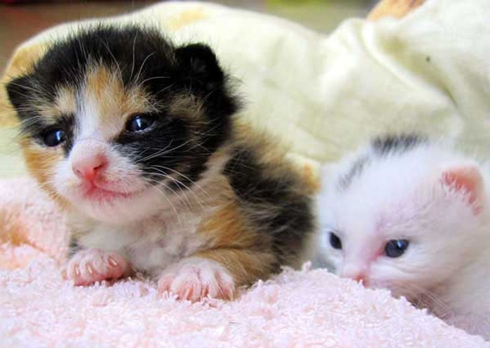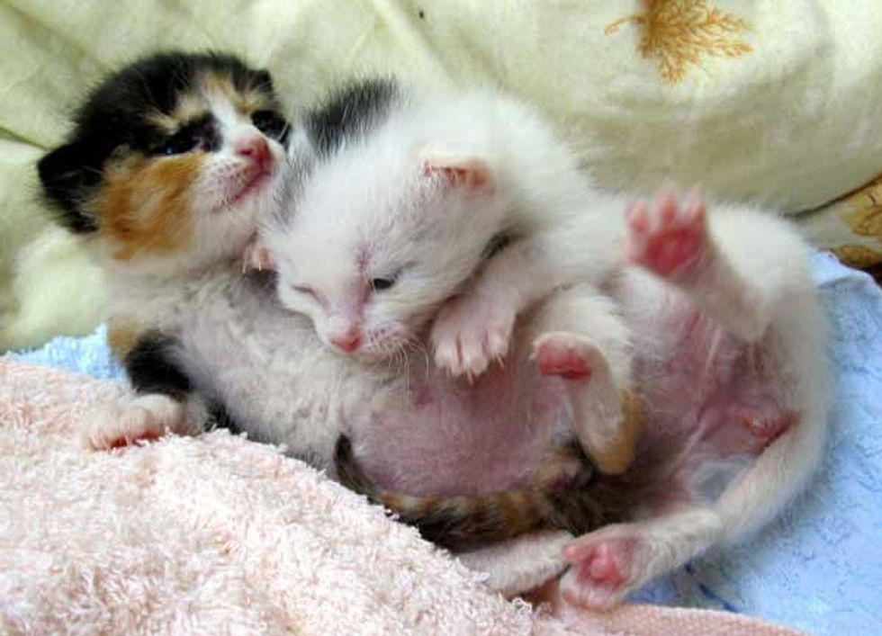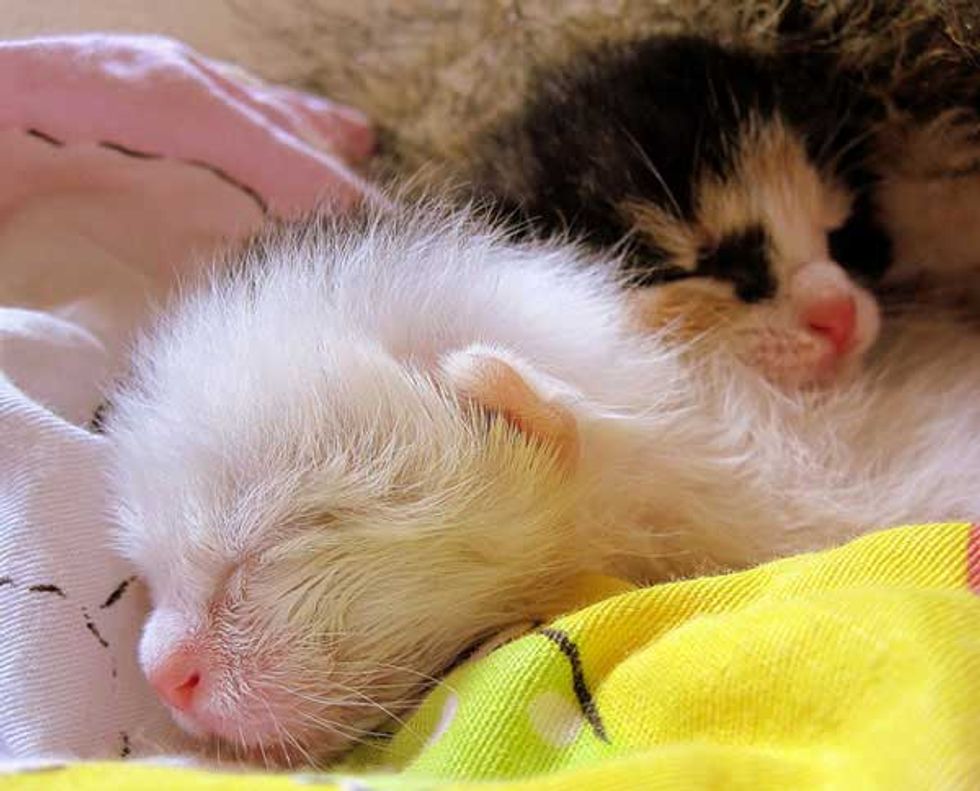 jump into action and started licking them and comforting them. The kittens put on weight and gained a lot of strength in their care. They saw the little ones opening their eyes for the first time and having their first exploration around the room under Midge's supervision.