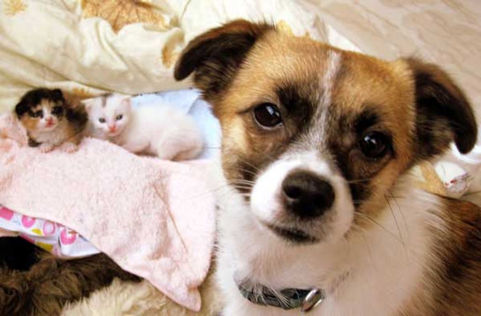 Moni spotted two tiny kittens that were only about 2 - 3 days old. She couldn't bear seeing them out by themselves so took them into her home despite her allergies. As soon as she came home with the kitties, her doggie, Midge came to help. "Midge, my little helper, loves caring for the kitties. She'll lick them and help me care for the babies," Moni wrote on her flickr.