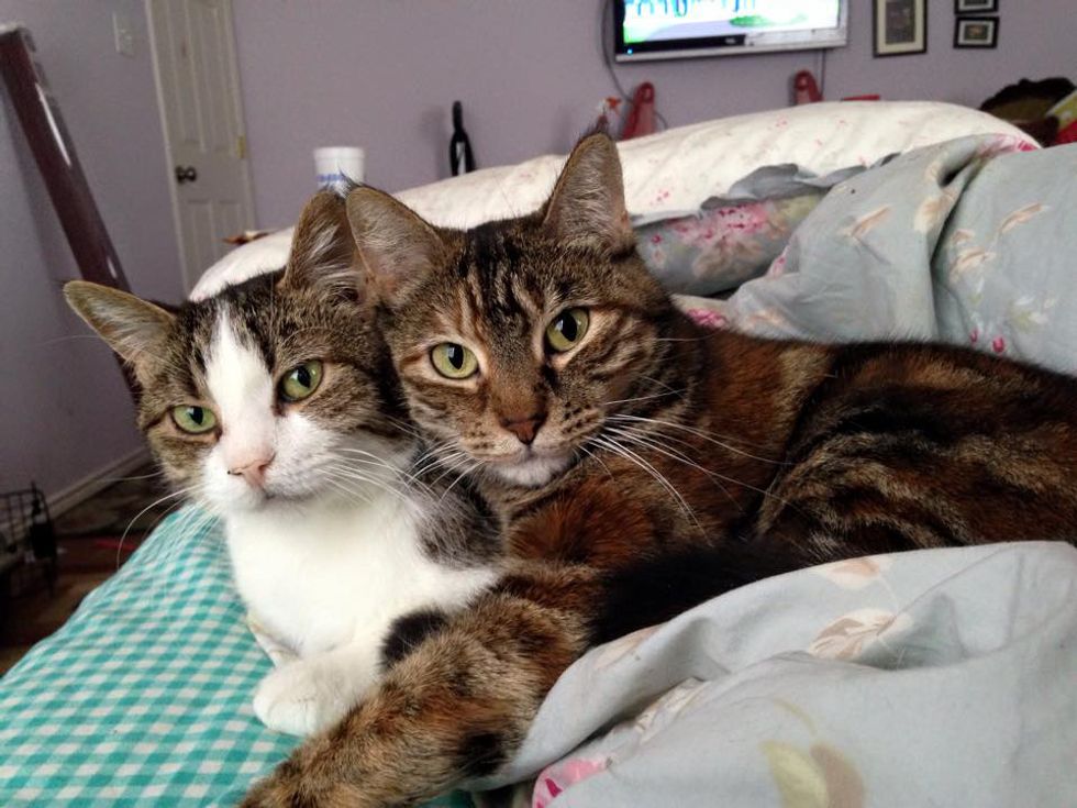 Because Britches has some health issues, she has bonded with another kitty named Olive who has become her guardian angel.