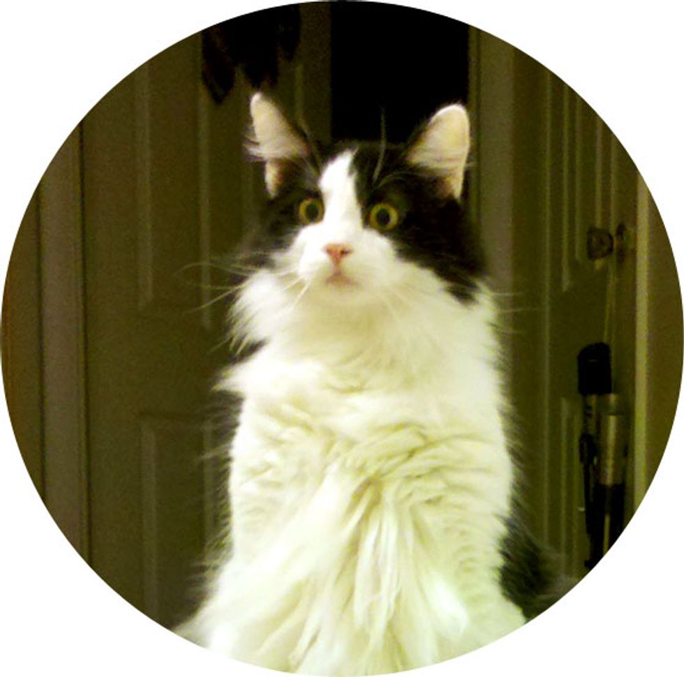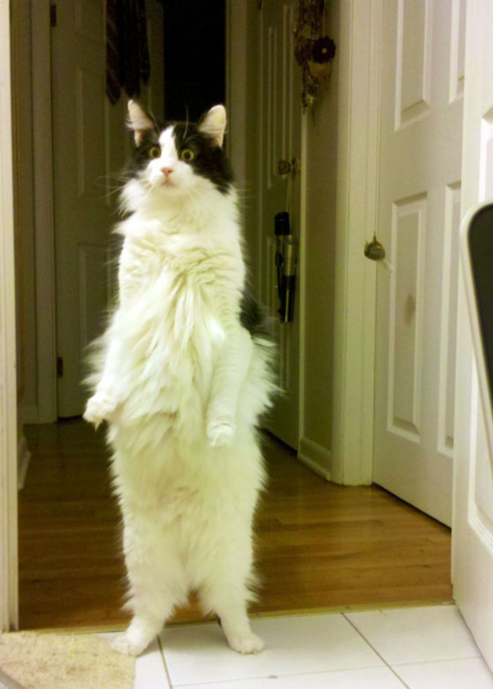 Long kitty is very curious about all the ruckus that is going on in the bathroom.
