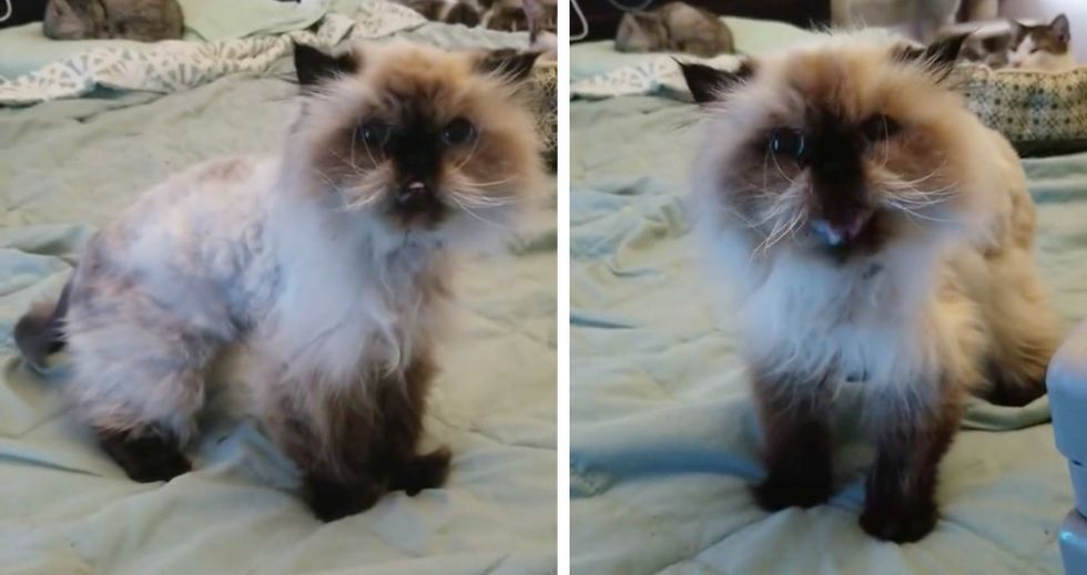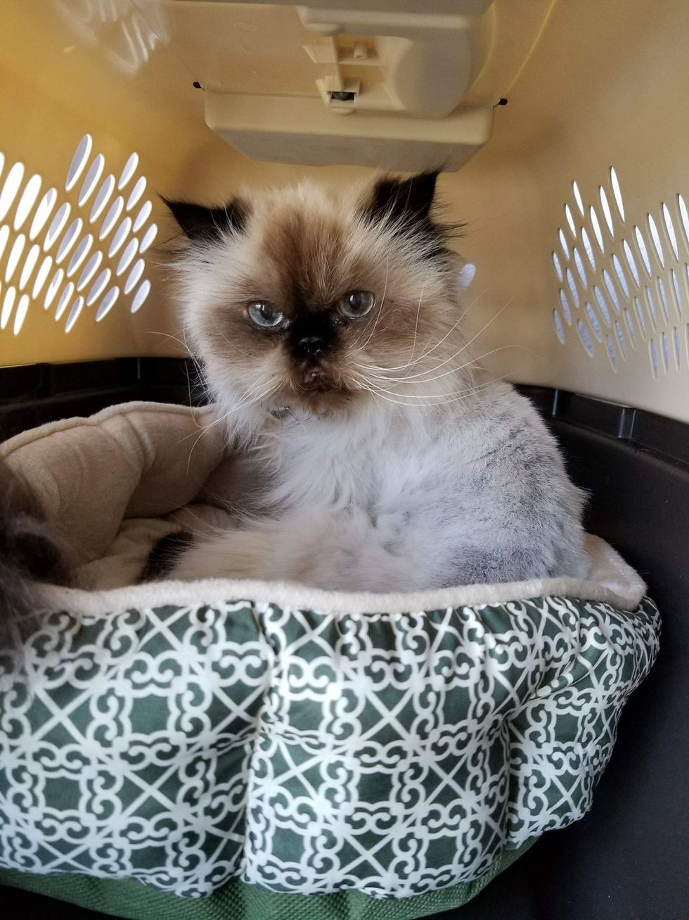 A few days ago, Karyn Poplin of Kitty Adventure Rescue League and Sanctuary was contacted about a 21-year-old Persian cat who was surrendered to a shelter with a request to euthanize because of her age. Karyn and her husband knew that they couldn't let that happen.
