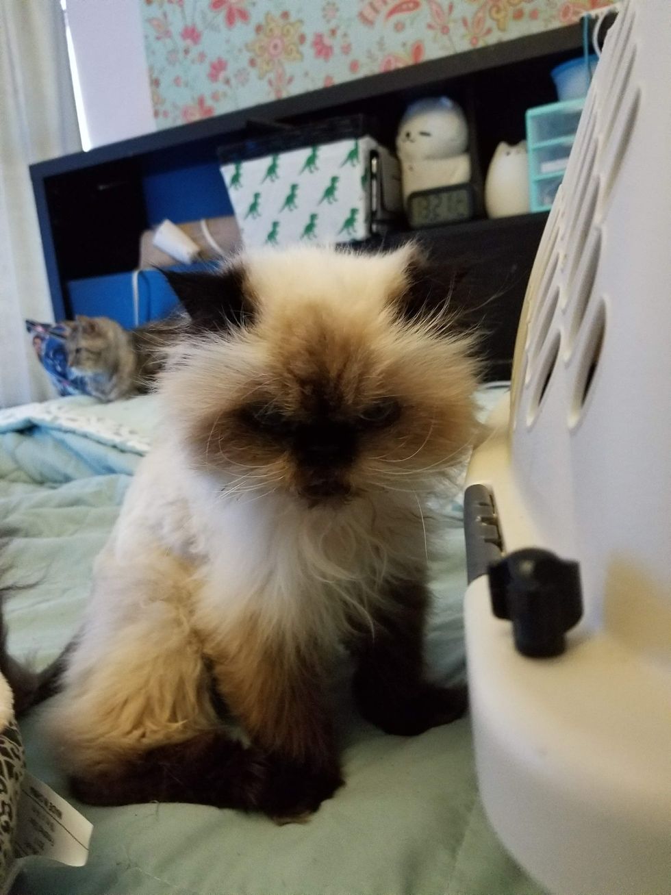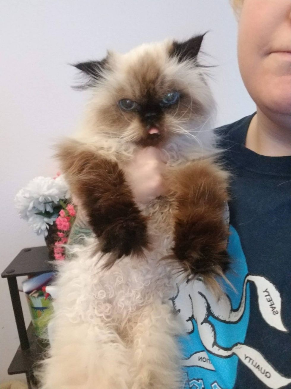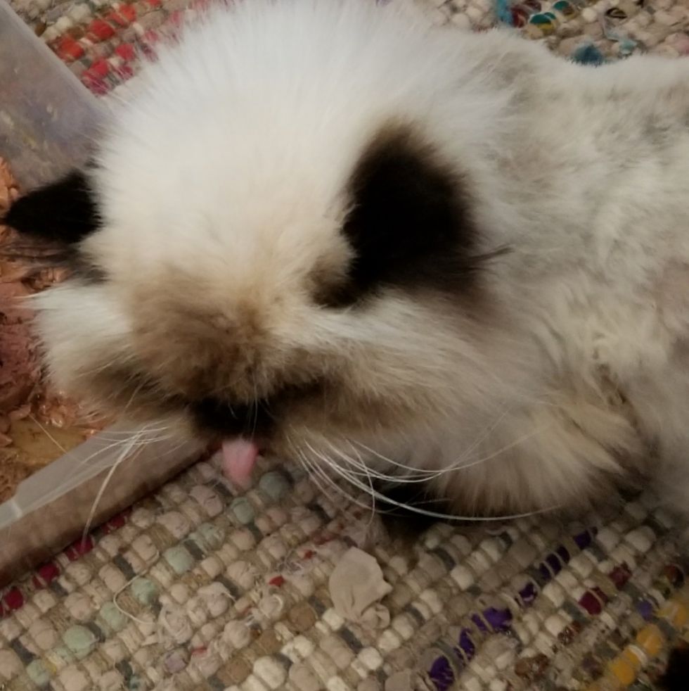 "She likes her space but does get along with other cats. She's missing most of her teeth so her tongue just sort of does whatever it wants."