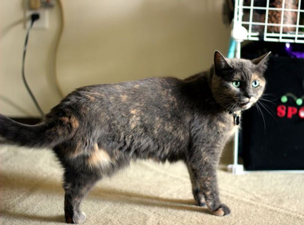 This cat is missing one leg. She loves it every time her human scratches the spot she can't reach.