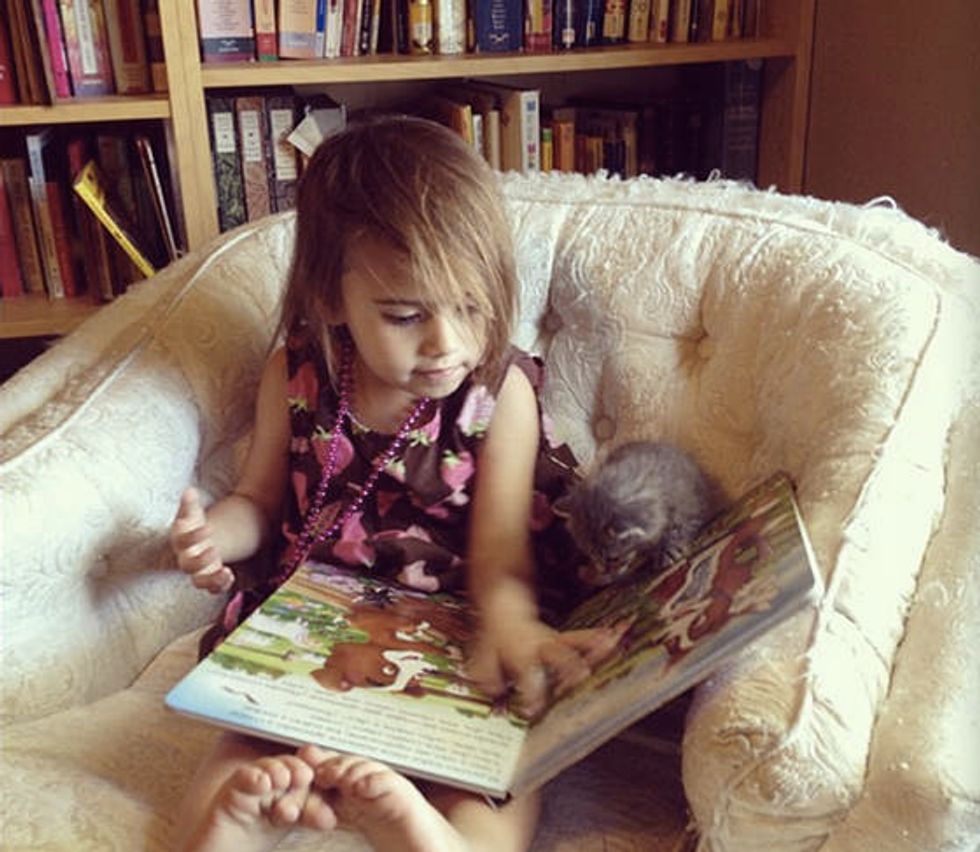 She loves reading stories to Squirrelly.