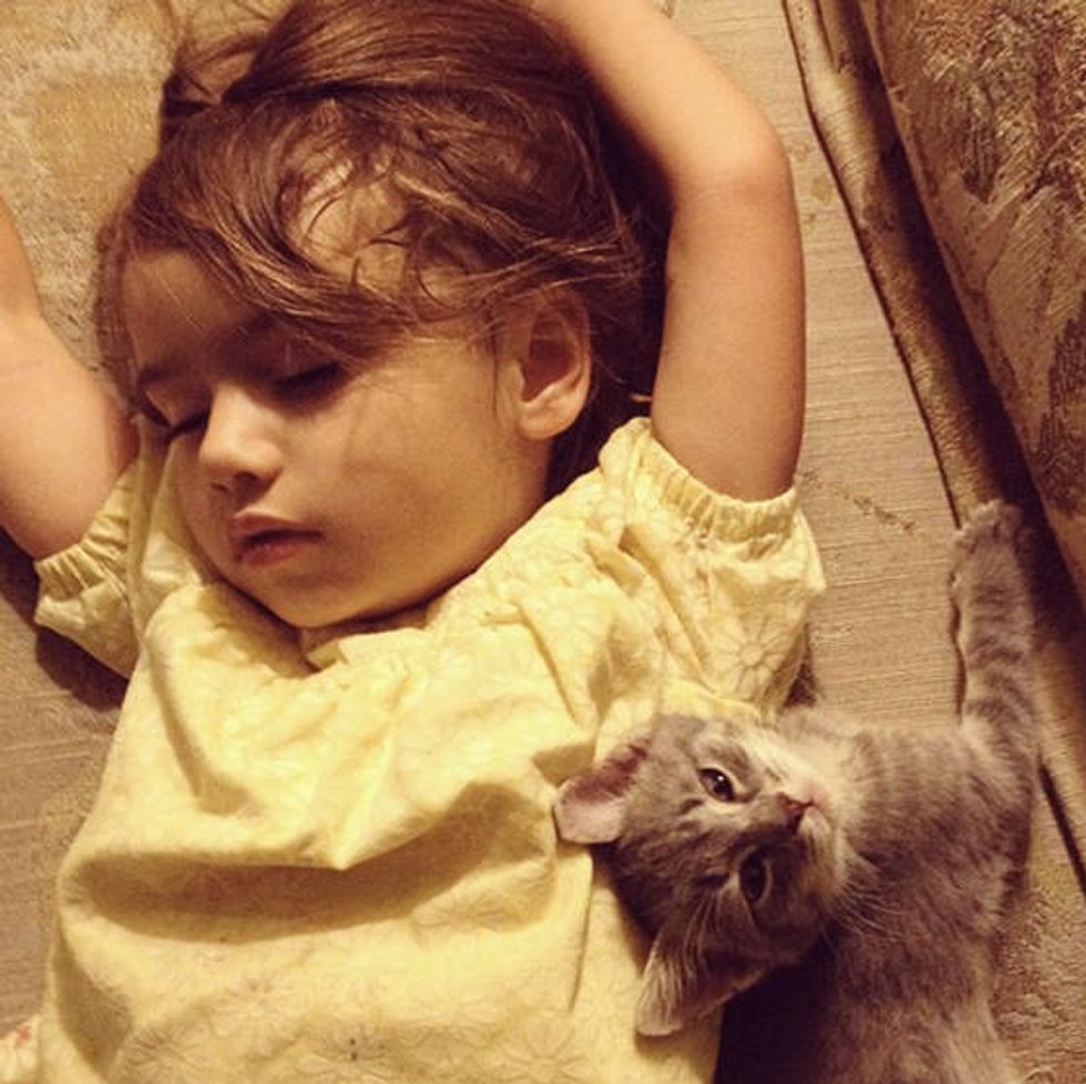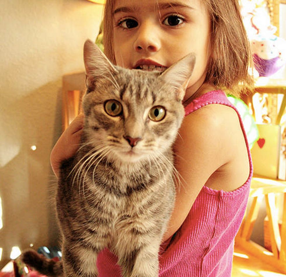 Squirrelly was found as a newborn orphan kitten. He was brought to a loving home where he met Isobel, a 3 year old girl.