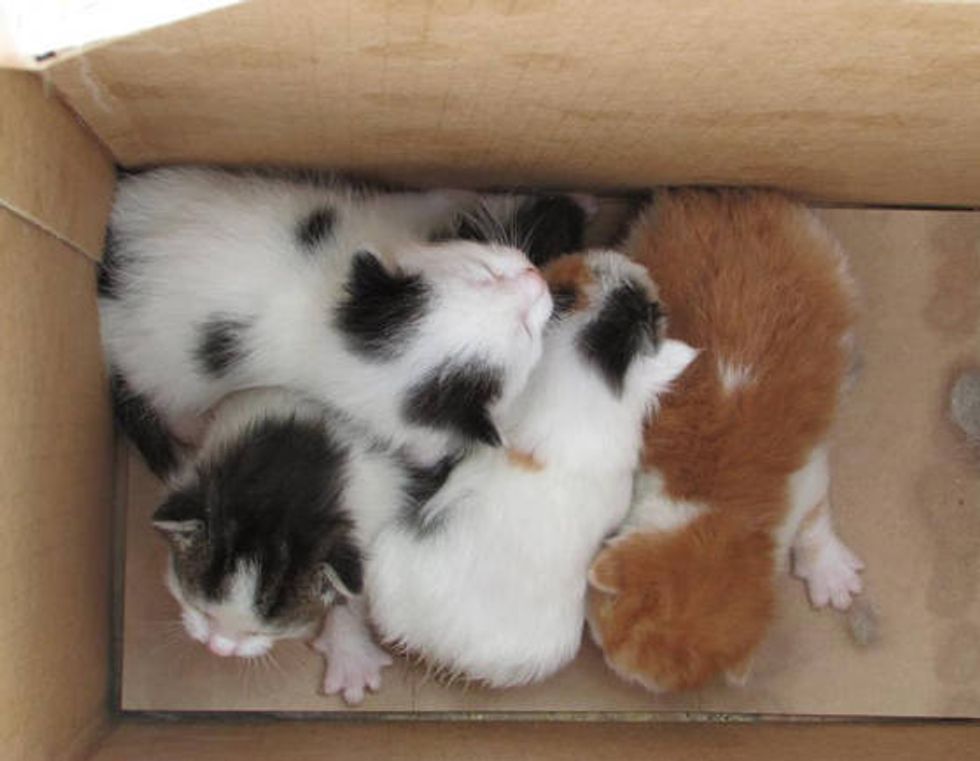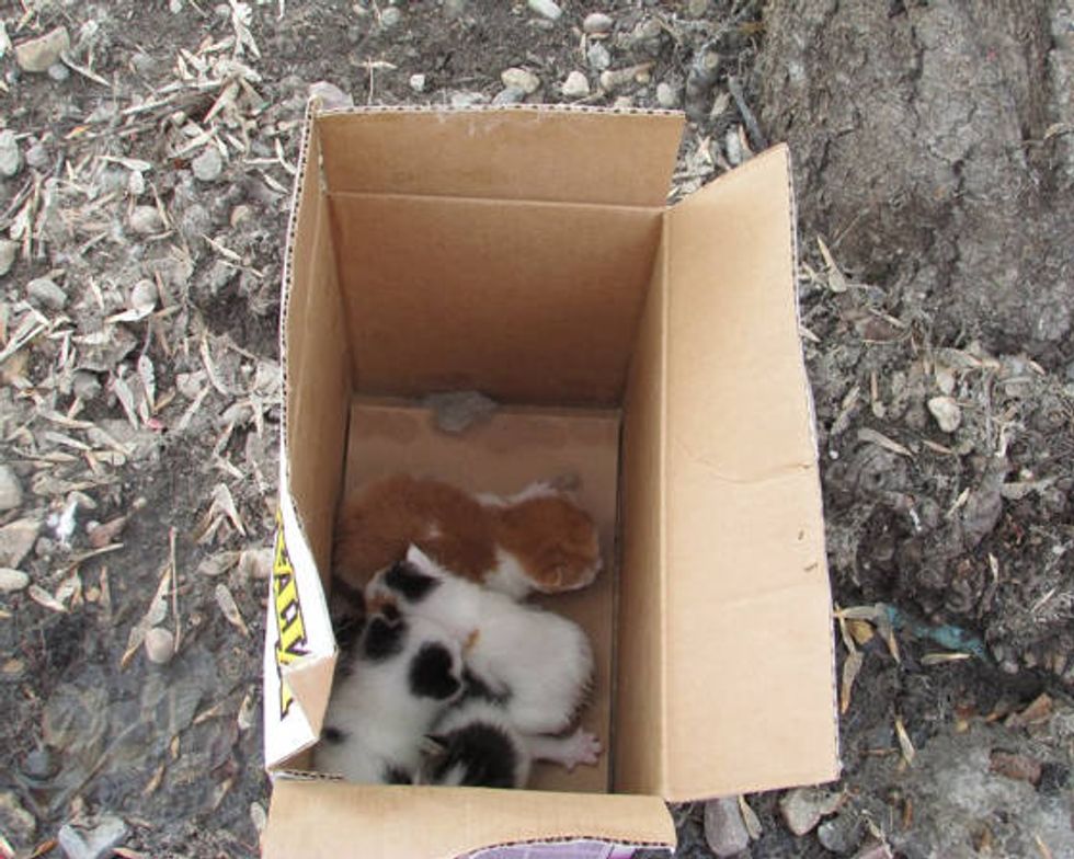 Four kittens were found in a small cardboard box in a dumpster near a local business. "A local businessman went to throw some things out when he discovered this box," said PrinceAlbert SPCA.