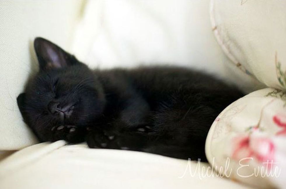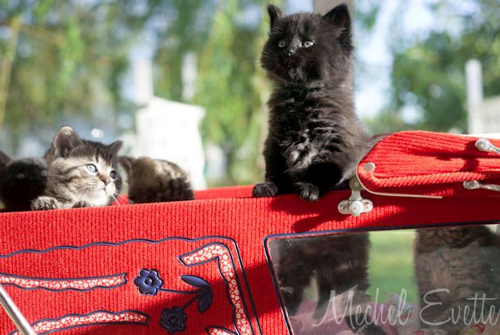 A rescue pregnant mother cat had a litter of five kittens, three tabbies and two black kitties. The shelter was over capacity and was in need of a foster home for the furry family. Chel learned about their story on Facebook, knowing if no one would take the kitties, the shelter might not be able to keep them, she offered help right away. "I am not part of the rescue group... (but) I have an all season runroom we hardly use, with a comfy couch and tons of sunbeams that is cat heaven, so I offered to keep (the mother cat). When (the kittens) are old enough they will be spayed/neutered and probably go to PetSmart," says Chel.