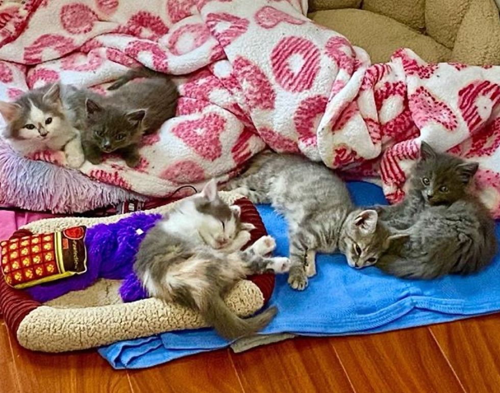 Five kittens who were found outside as strays, are so happy to get the help they needed to thrive.