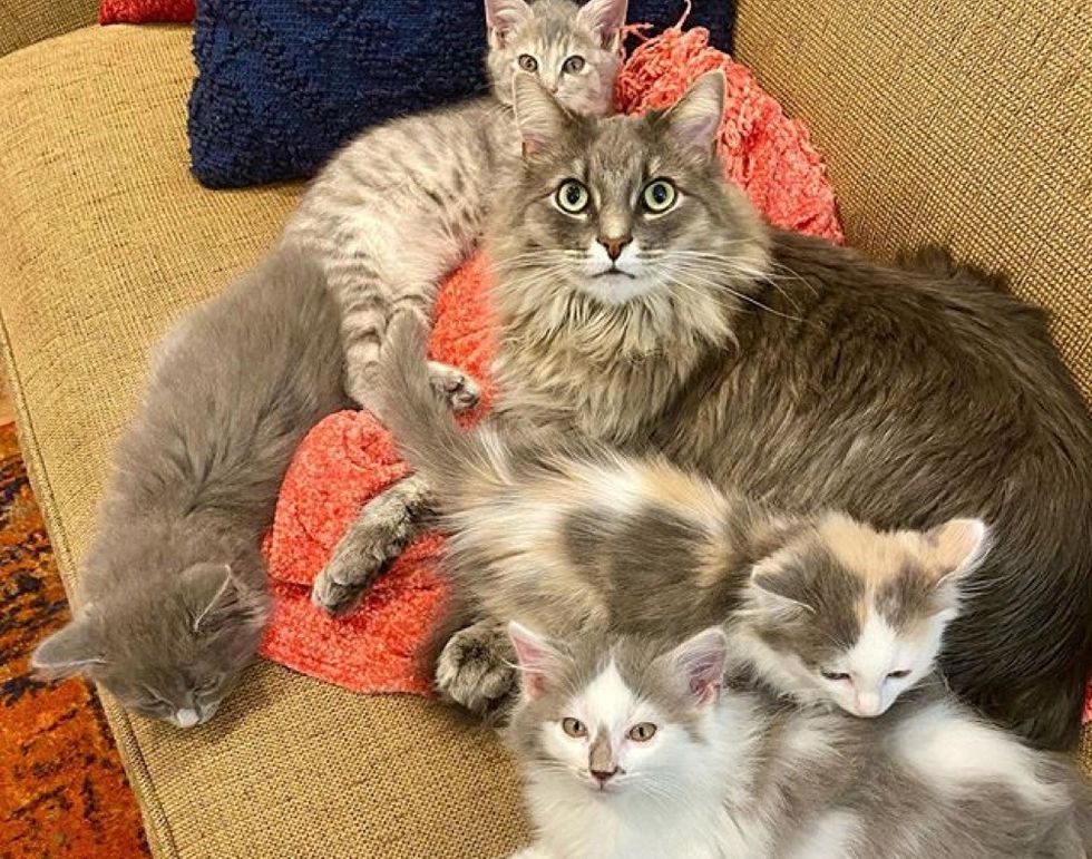 Now, the fluffy gentleman is giving the kittens the same love that he received when he was rescued.