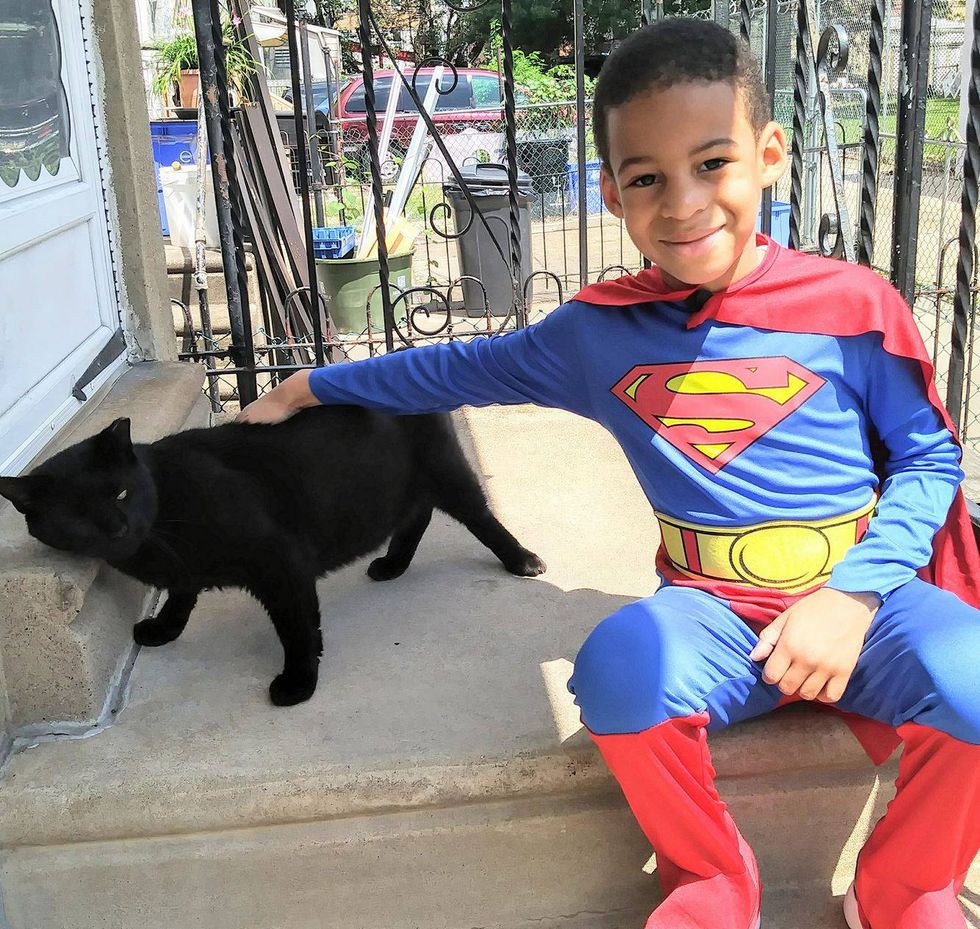 Sometimes he will dress up in his favorite superhero outfit because "it makes him feel like a superhero to the Kats!"