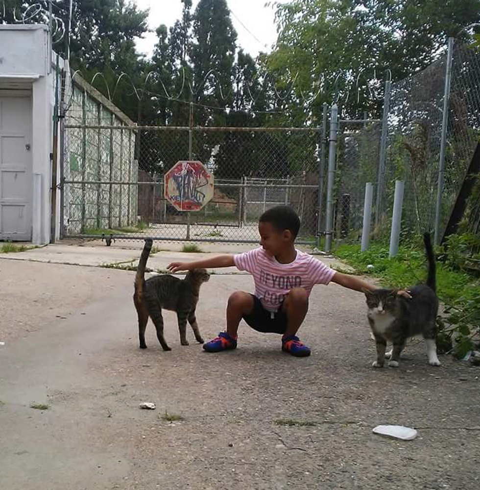 He's been doing that every day since he was just three years old. To him, those cats mean family.