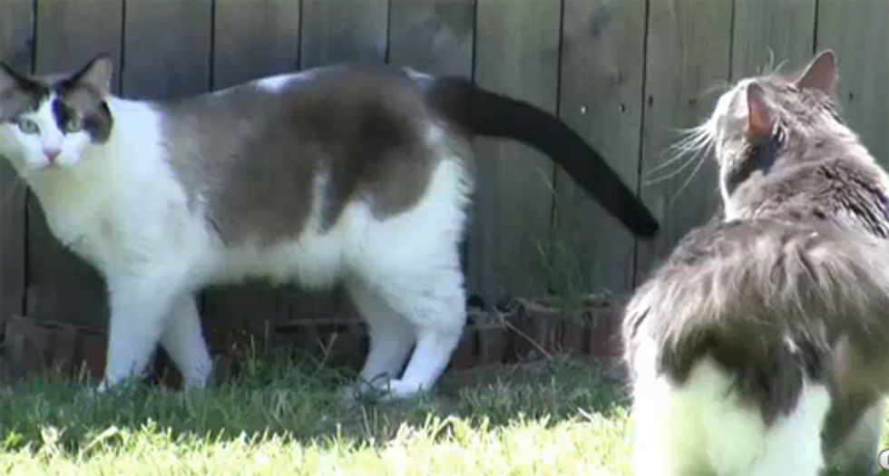 The Cat Diaries features two lovely kitties - Casey (a gray male cat) and Sassy (a white female cat). These beautiful cats do "everything from playing, eating, sleeping, killing spiders, jumping, dancing, talking, meowing, fighting, chewing on bags, hissing, clawing boxes... just to name a few."