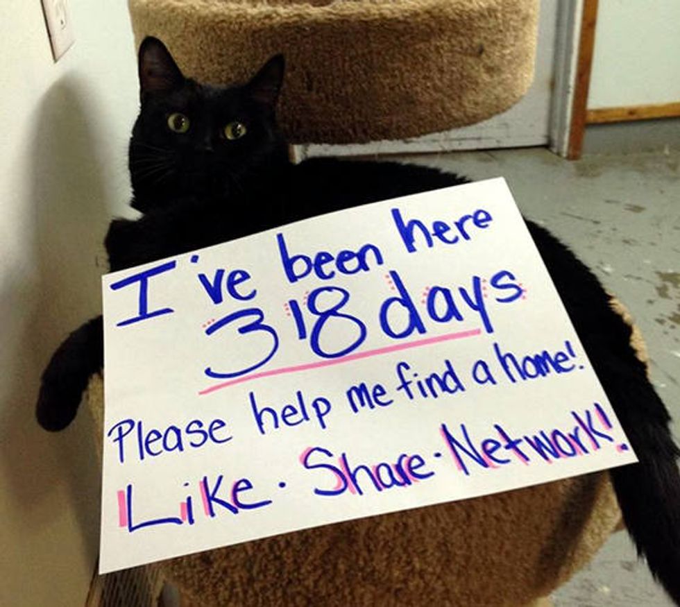 Lady, a 9 year old cat, asks for help to find a forever home. This picture has gotten over 20k shares on Facebook