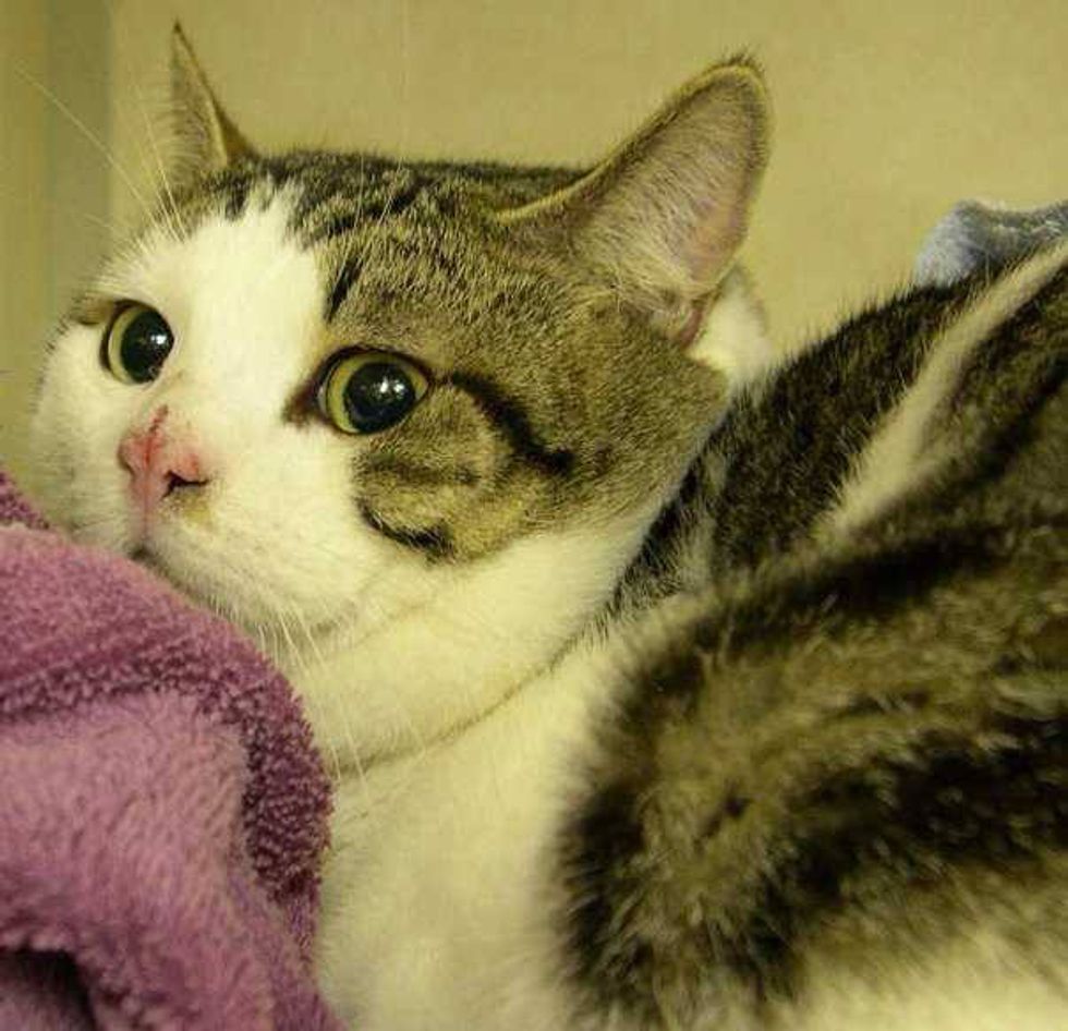 "He is a much happier cat living here. He has his set routines, which he never strays from. He has his own private space away from the chaos of the rest of the hospital and is really thriving."