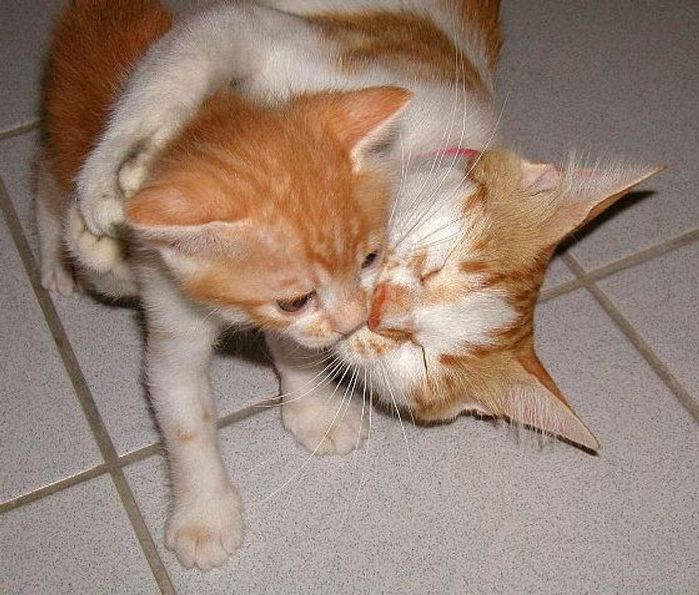 Kitty gets bigger, but cat mama never lets go: