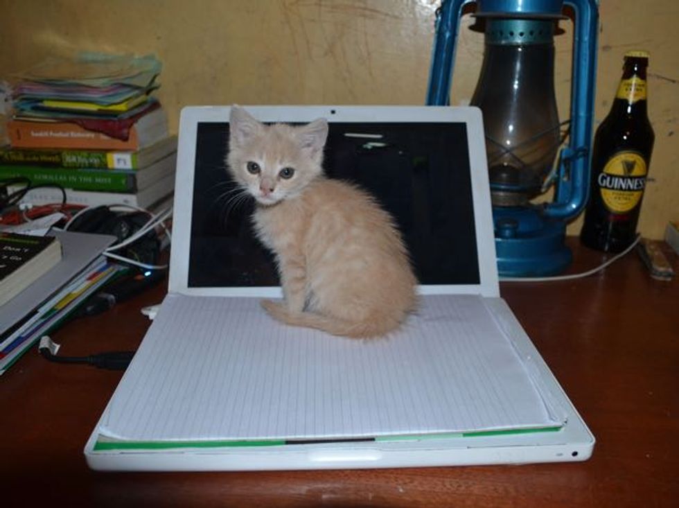 While he was working for a non-profit that he started in Kenya, he came across a tiny ginger kitten in need of a home. "I was living in a very small room near the slum."