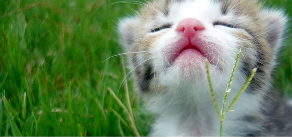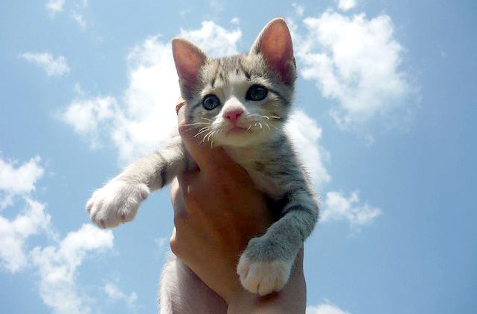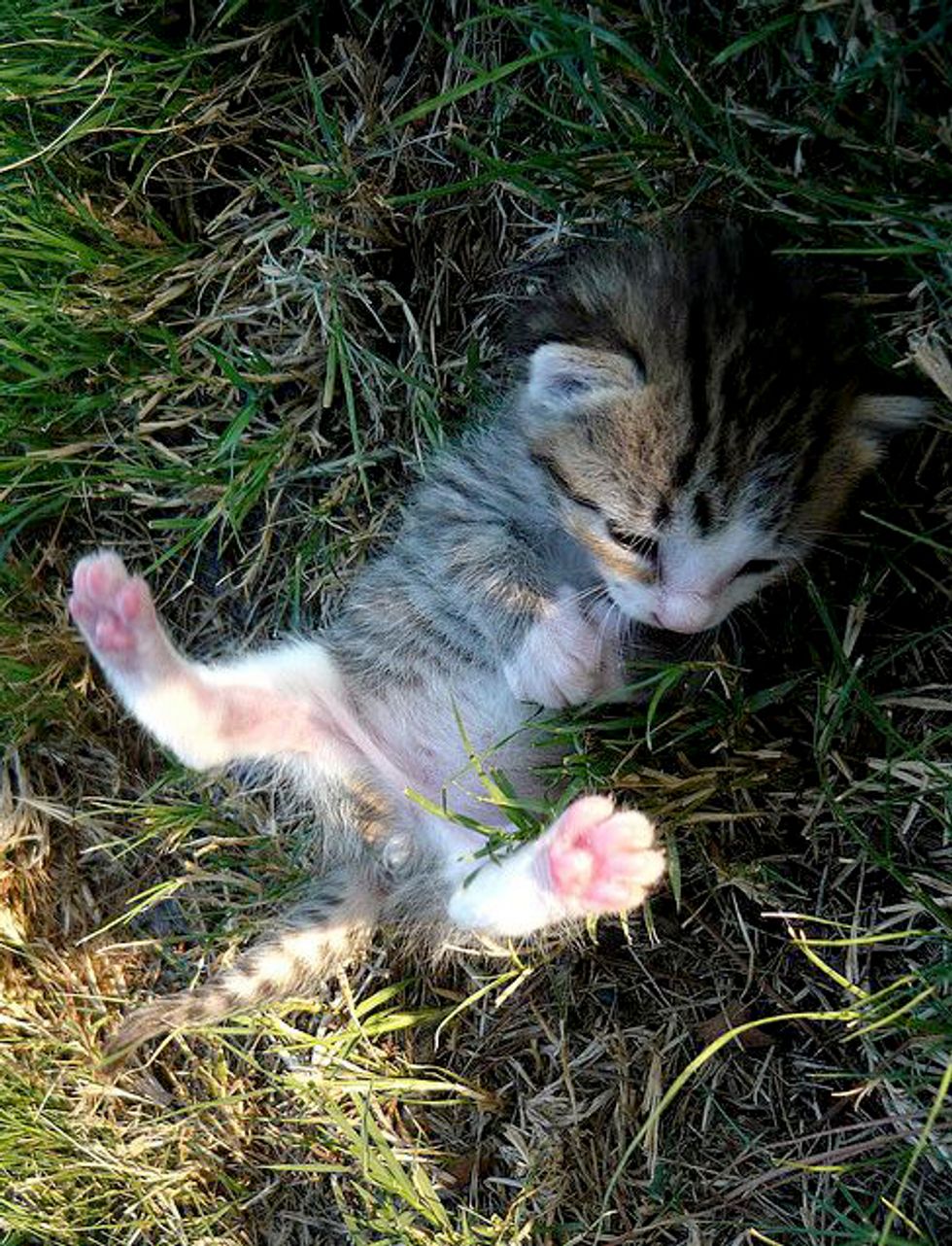 It was late at night and the cows in the neighbor's pasture were mooing loudly as if they were in pain. My mom and her friend left to check to see what was going on, without telling my friend and I, who were inside, where they went. When I noticed that they were gone I left with a flashlight to go find them. I went over to the cows, but I took a different route then my mom and her friend went. I was walking with my flashlight and I heard a strange noise. I waved my flashlight back and forth, and there on the ground was a little kitten, about a week old, laying down crying.