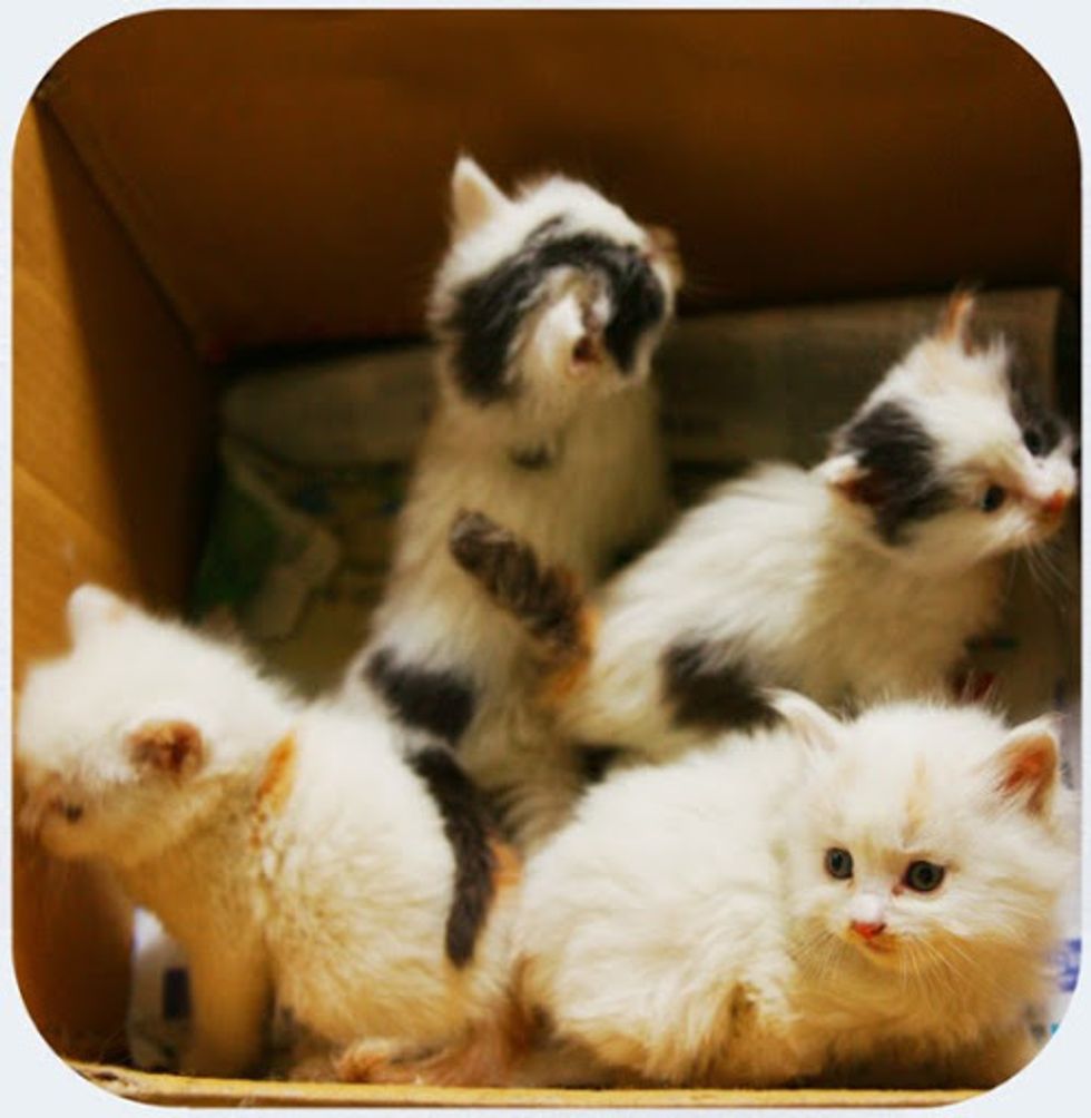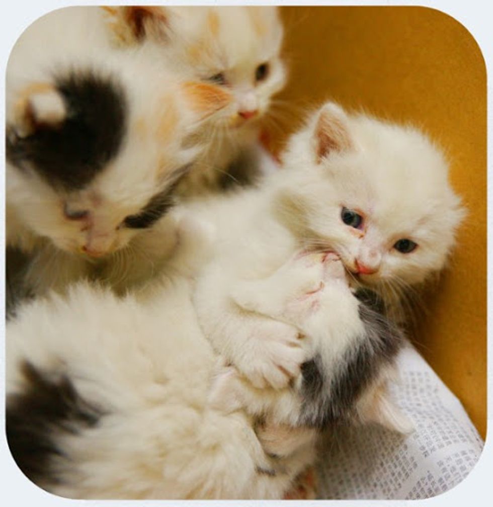 These tiny little kittens were given birth by a feral cat mother. They were found by a man who rescued them and tried to find good homes for them. It's great that they are in good hands now. Many of them have been adopted. Hopefully the mother cat will be fixed soon.