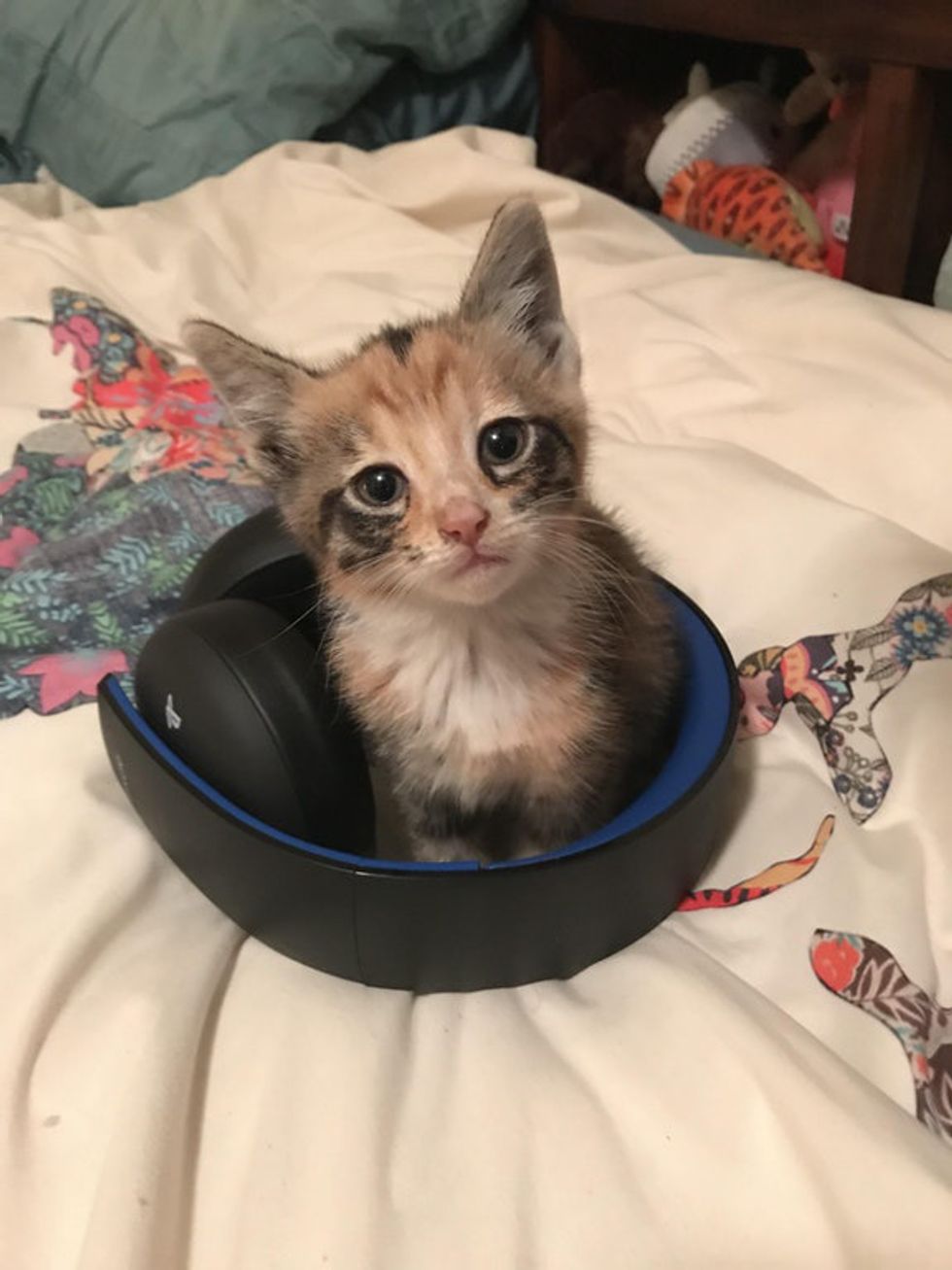 Due to their lease agreement, Dustin isn't allowed to have pets at his apartment. He and his girlfriend, Mary Neal, decided to foster the kitten until they could find a great home that would love and spoil their calico baby.