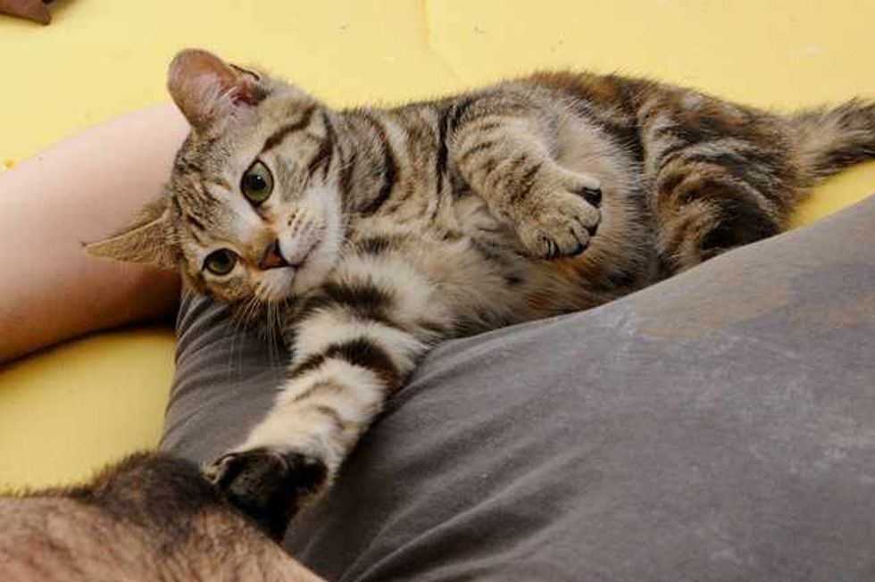 Not all feral cats can transit into home life. Unfortunately her brother, Stellan, never got any better. He would lay on the bed near us, play with the feather toy with us like a mad man, eat in our presence, etc, but he NEVER got to the point where I could get my hand close enough to pet him. He always needed at least a 3-5 ft distance from us, and would jump and run and otherwise freak out (possibly injuring himself or objects in the room) if you tried to come closer to him. He was also EXTREMELY active and was getting very restless in the bathroom, even with regular play sessions, and was destroying the bathroom with boredom, so I made the tough decision to release him back to the colony near me where I could feed him and keep an eye on him. Within a couple days he and a feral resident, Creamsicle, were playing and hanging out together. They became inseparable.