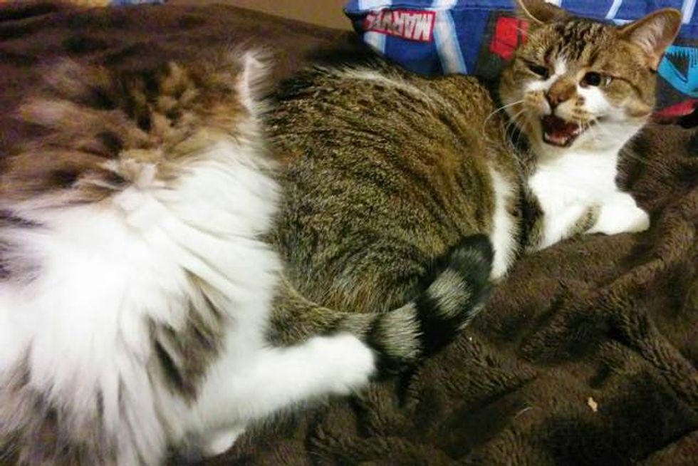 At first, "Sausage seemed to take forever to warm up to the kitten, seeming to be in a constant state of 'grumble and hiss'"