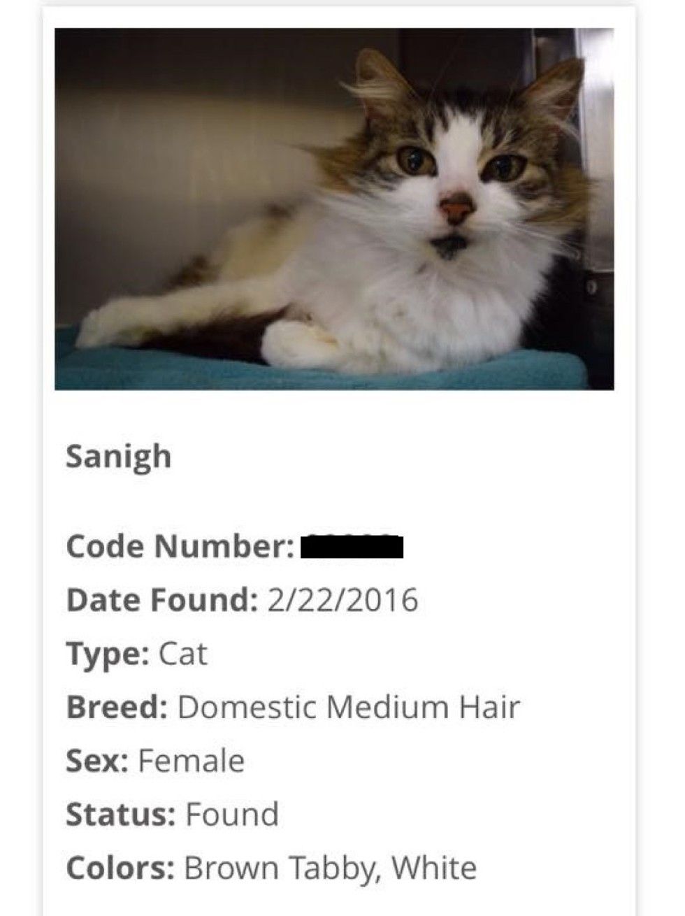 While the kitten was at the shelter, they got in touch with the family and found out her name and age.