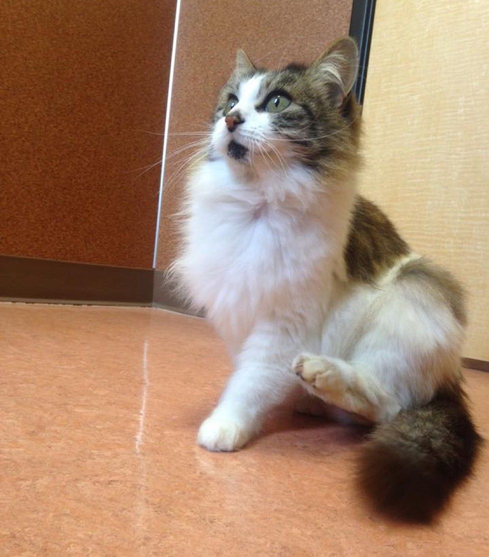 A week ago, this kitten ran up to a young woman and jumped onto her knees. Now she can jump on her lap and snuggle in for naps for the rest of her life.