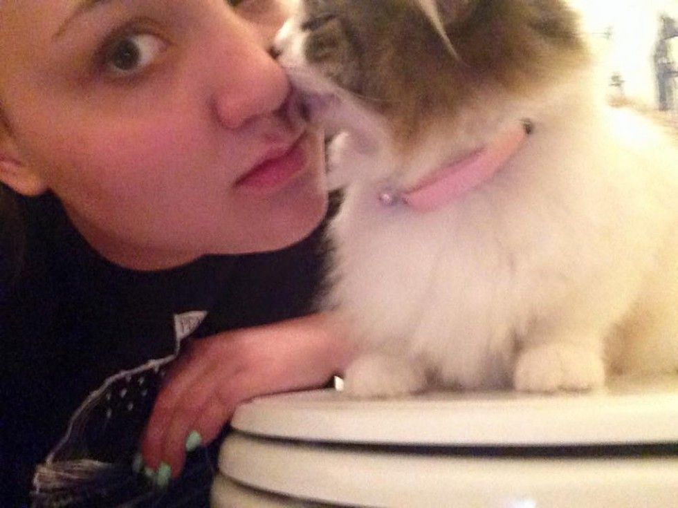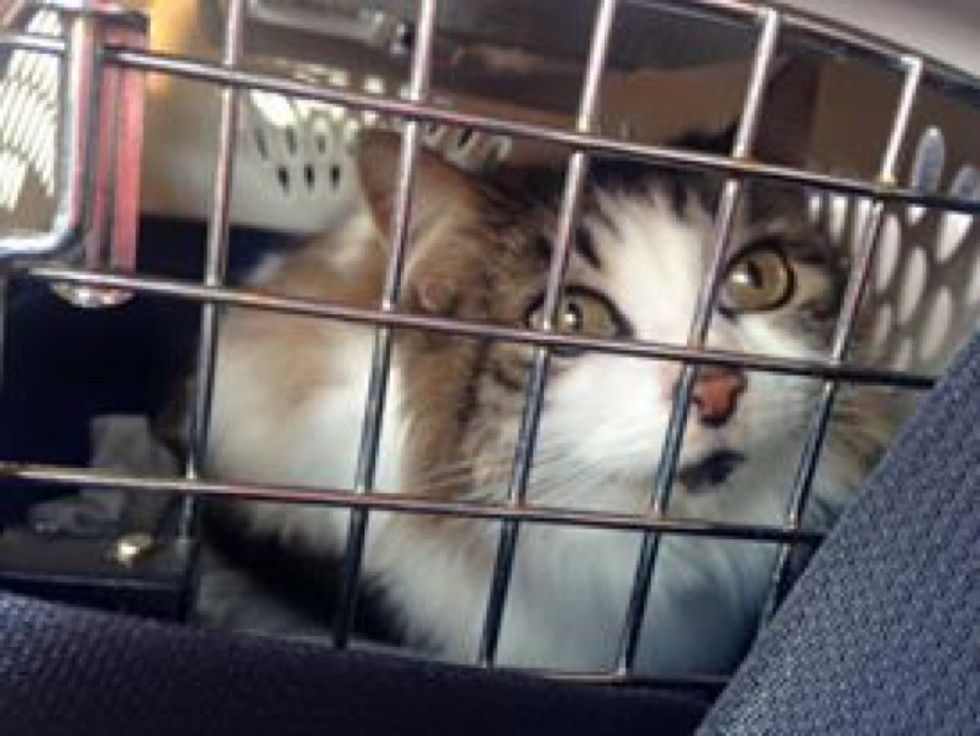 "I was getting out of my car at a friend's house for an appointment when I heard the loudest meow I'd ever heard from behind me. There was this tiny bundle of fuzz dashing at me at full speed," she said via reddit.