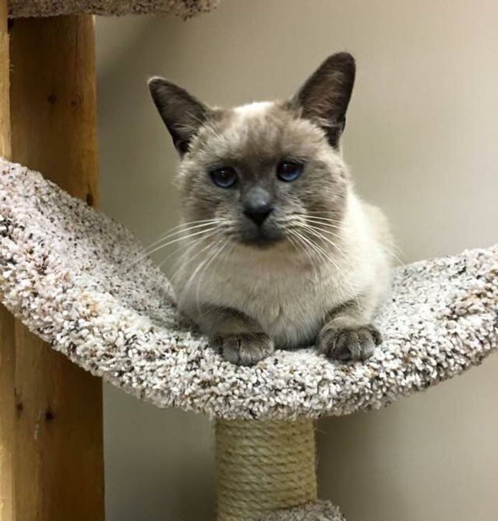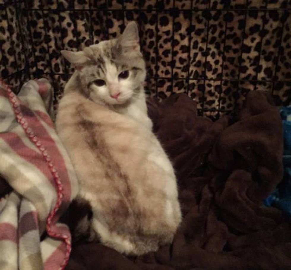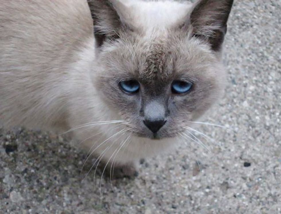"Poor General was thrown out by his previous owners. He and his relative Siamese Grant appeared at a feral outdoor colony in search of food. They were starving and not in the best of shape," Here Kitty Kitty Rescue told Love Meow.