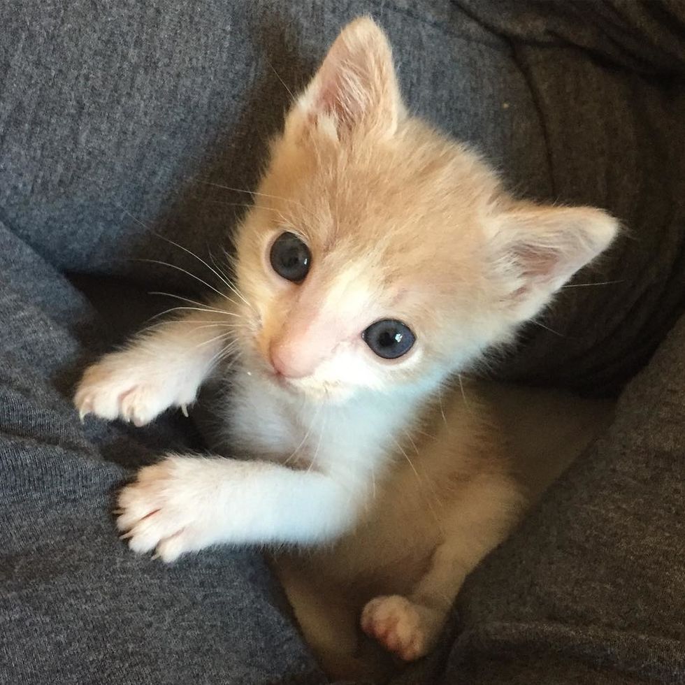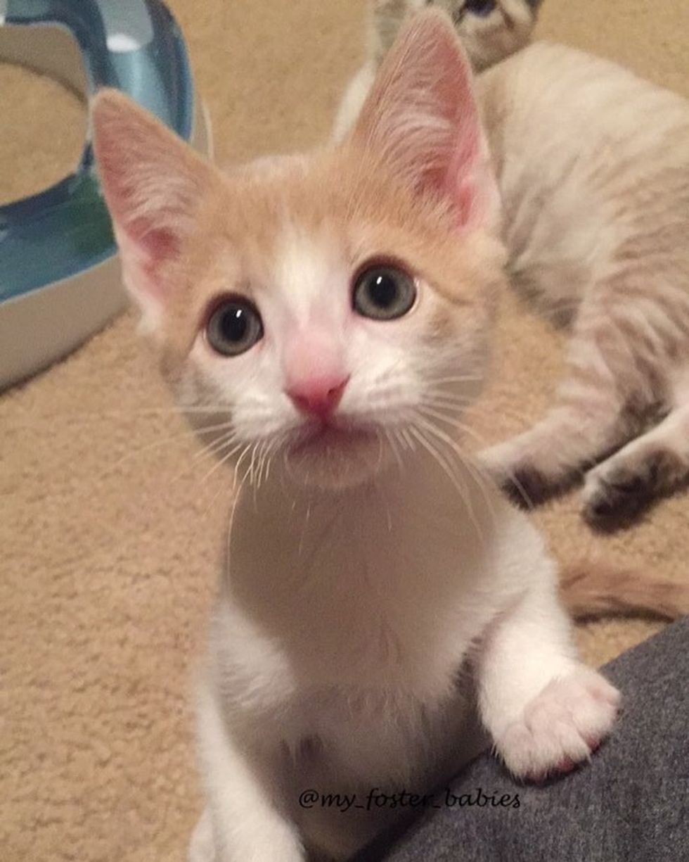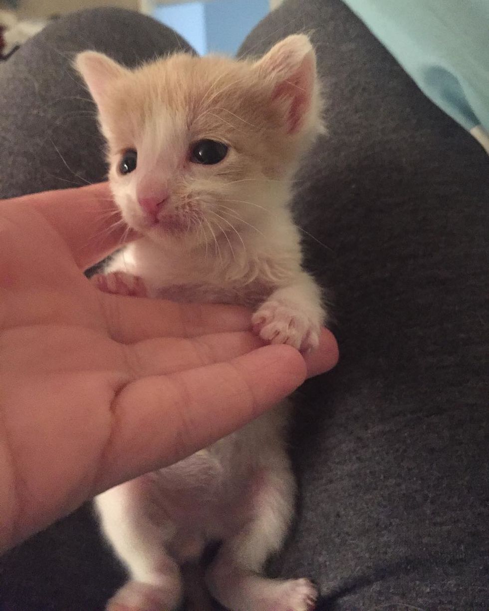 A tiny ginger and white kitten was just 10 days old when he was taken to the shelter, looking for someone to love.