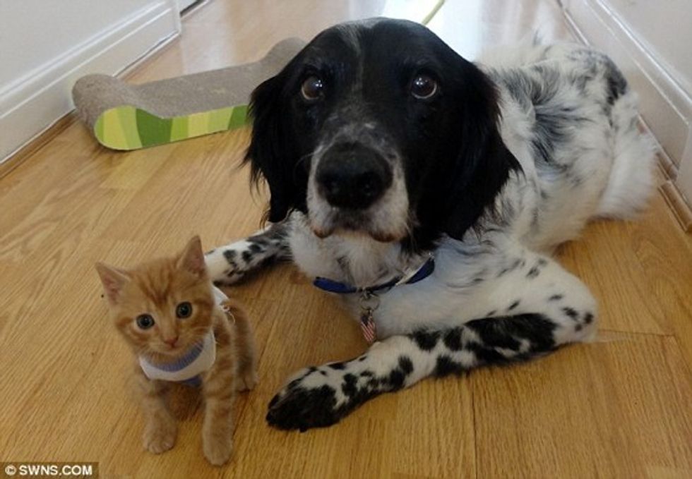 They were nursed back to health, wearing protective coats made of baby socks. This is one of the kitties and his dog buddy at the RSPCA.