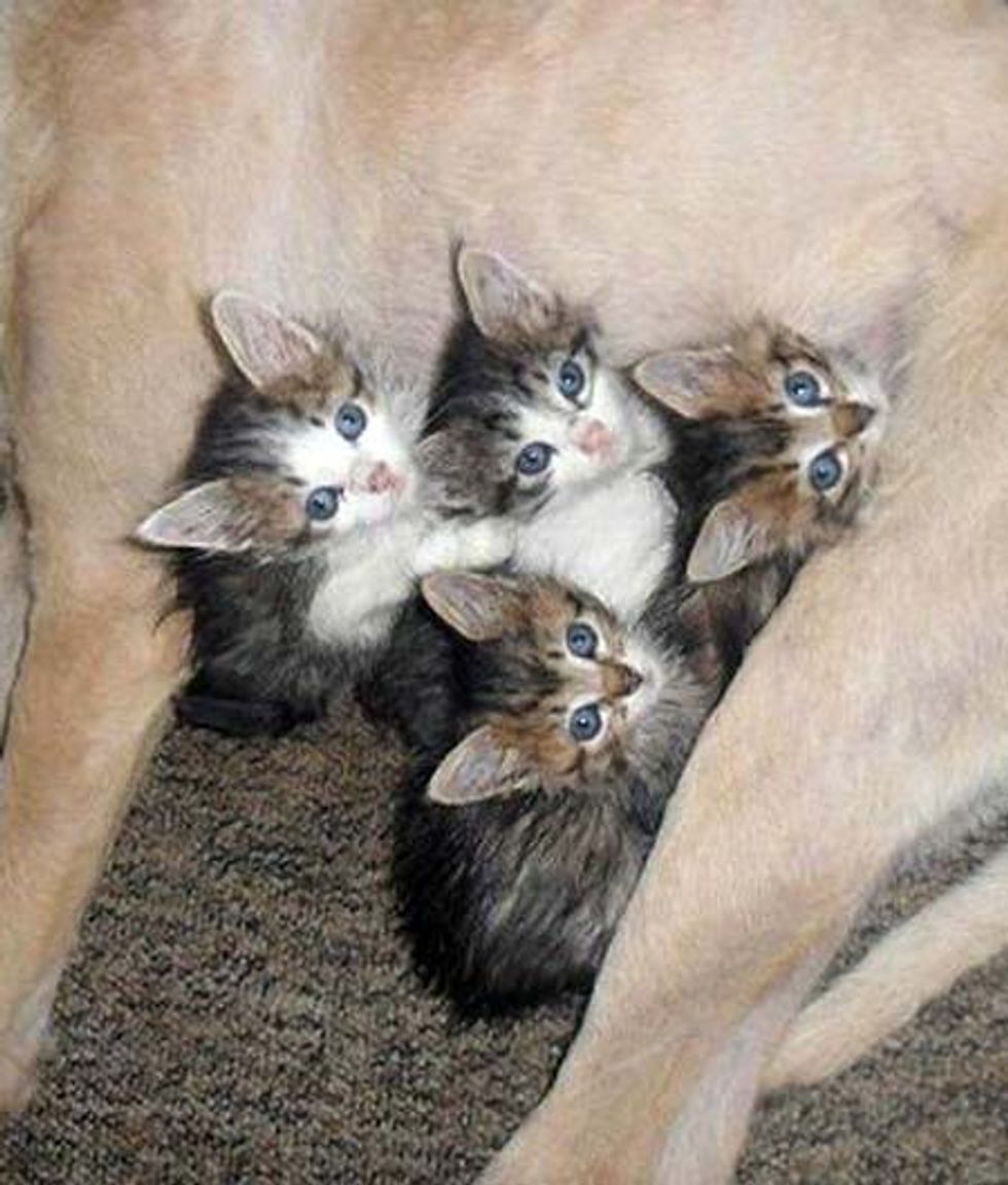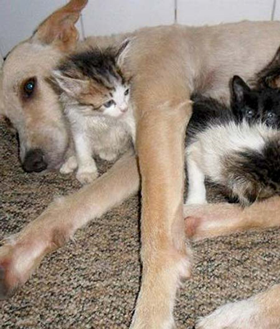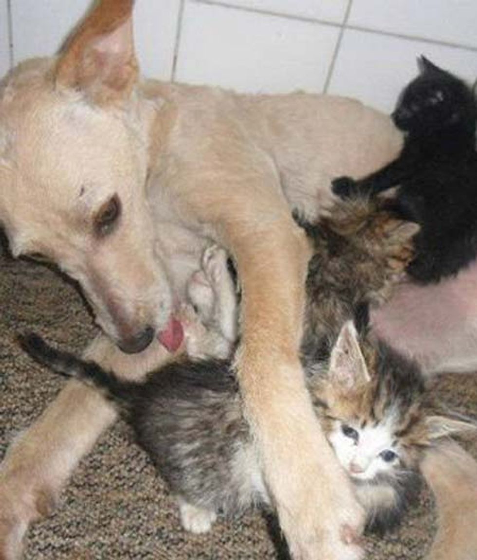 Little abandoned kittens rescued by a once homeless dog, Banzé.