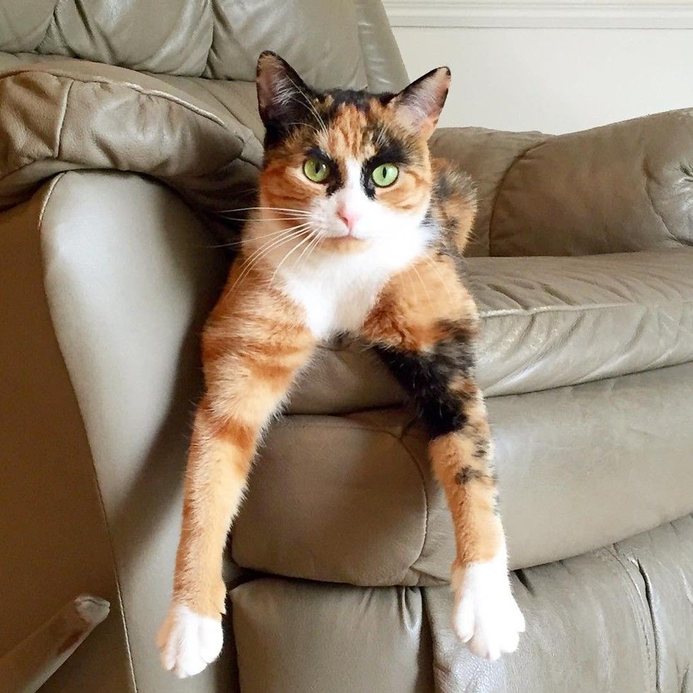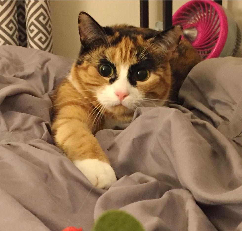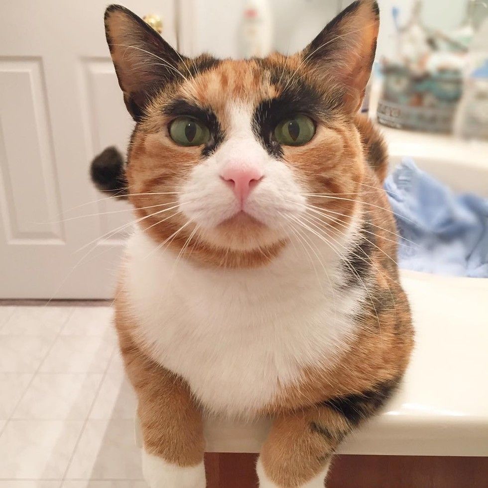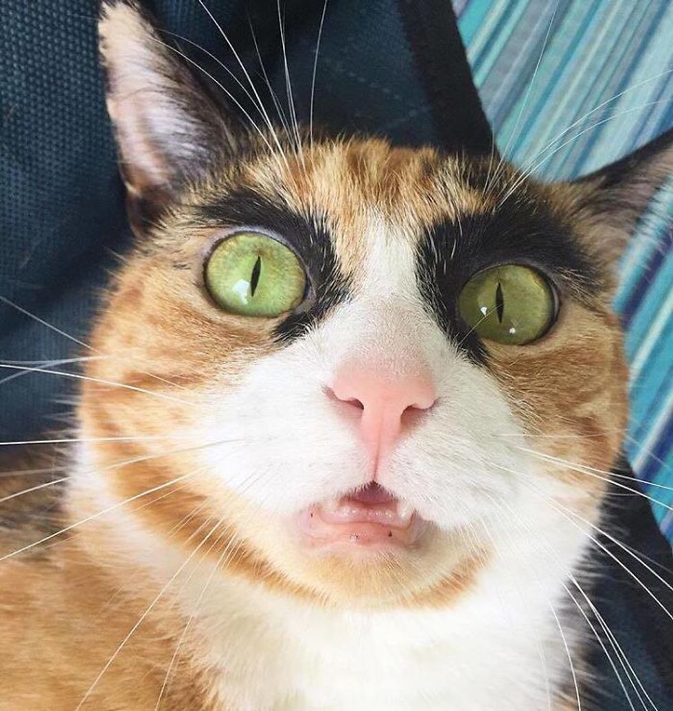 This calico kitty has quite the personality. She judges her human everyday with her incredible looking eyebrows.