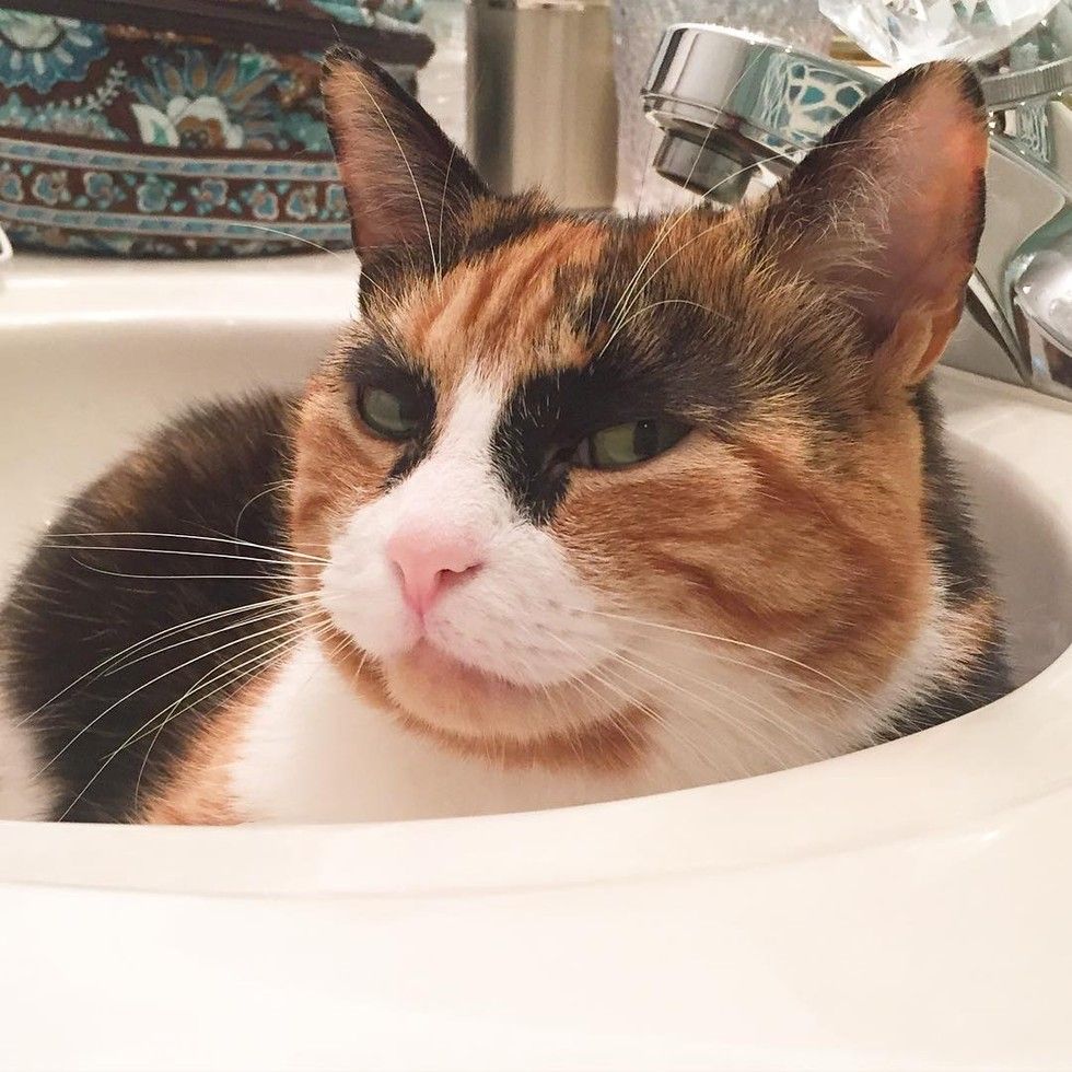 When she decides to chill in the sink, her human must wait.