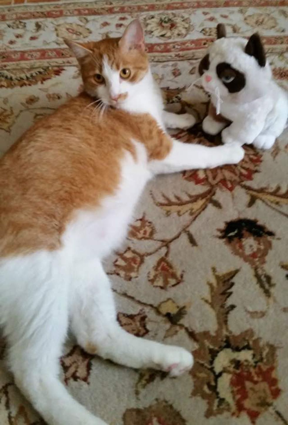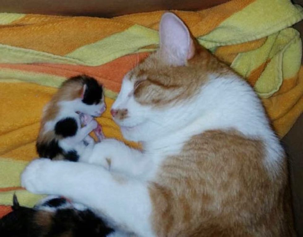 They adopted a cat who needed a forever home but what they didn't know was that the beautiful ginger and white cat came with a big furry surprise.