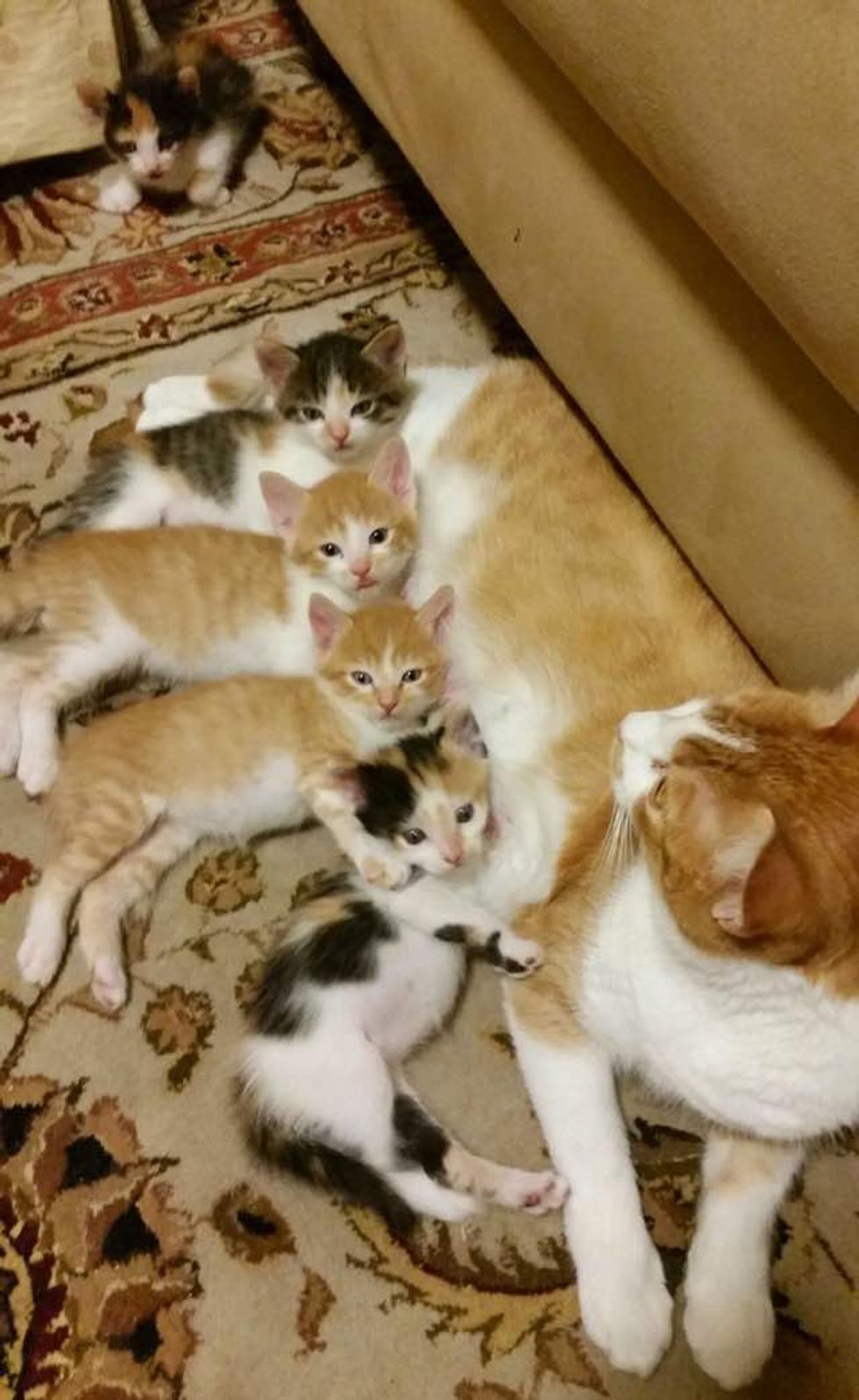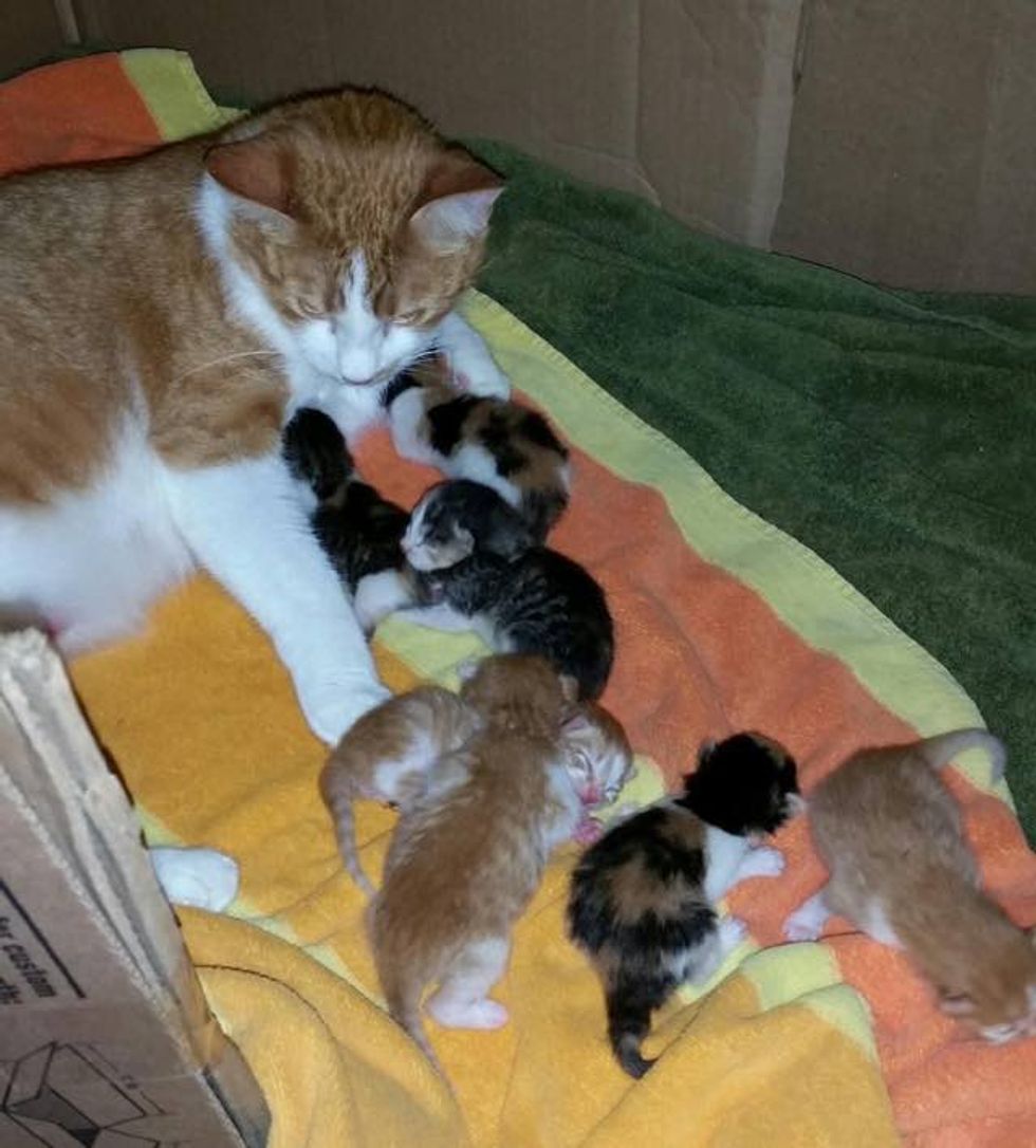 The couple were shocked by the surprise and overwhelmed by the cuteness. They ended up with eight kitties in their home. "Single mom doing her best."