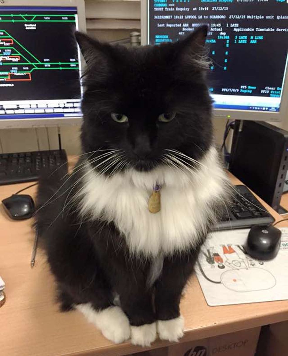 Felix was nine weeks old when she came to Huddersfield Railway Station in West Yorkshire, England to help the humans tackle the rodent problem. Now five years later, with her dedication and hard work, she is no longer just a simple mouse catcher. Felix is now Senior Pest Controller and even has earned her very own visibility jacket and name tag.