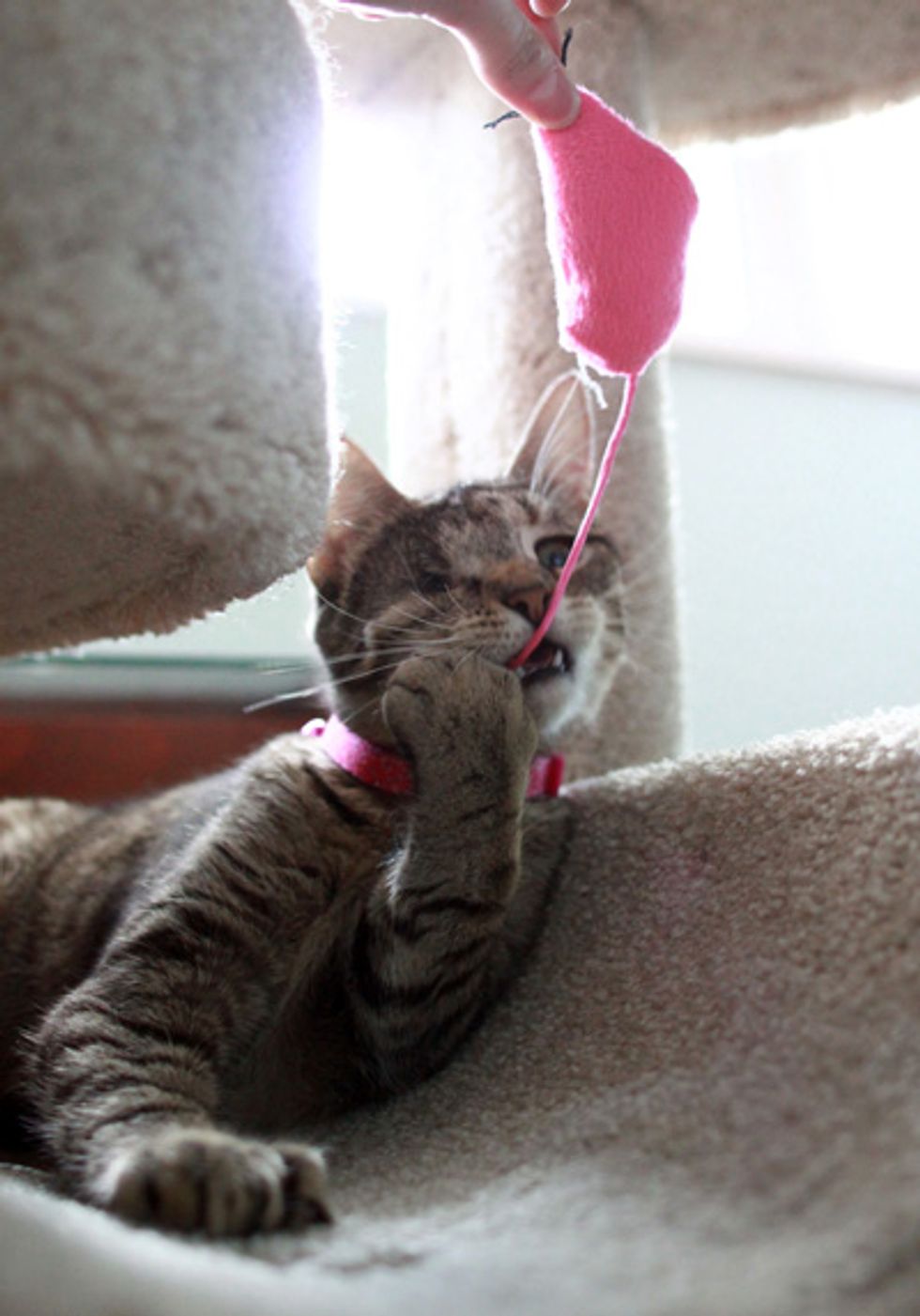 Today after 2 months, she has come out of her shell so much. It truly has been such a rewarding experience. She resides with 3 humans including myself, 2 dogs who have become her pals, and also two small birds. Yes- birds... It's a full house over here, but we wouldn't trade it for the world. I love my little pirate kitty. Oh, and- she's also a "Hemingway Cat"... She has a total of 24 toes. :)