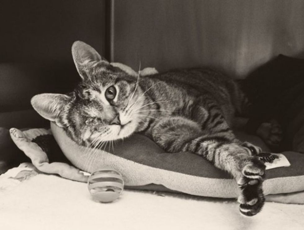 I would visit her cage every day at work, and talk to her, and pet her. Even if it was only for 5 minutes. I felt it was important to socialize her. We eventually ended up adopting her, for many reasons. With her being extremely shy, and only having one eye, the sad reality was that she would have a more difficult time getting adopted, compared to the cute "perfect" little 2 month old kittens that would purr up a storm the second you laid your eyes on them. We felt that we could provide her a great and loving home, and we would love her for who she was.