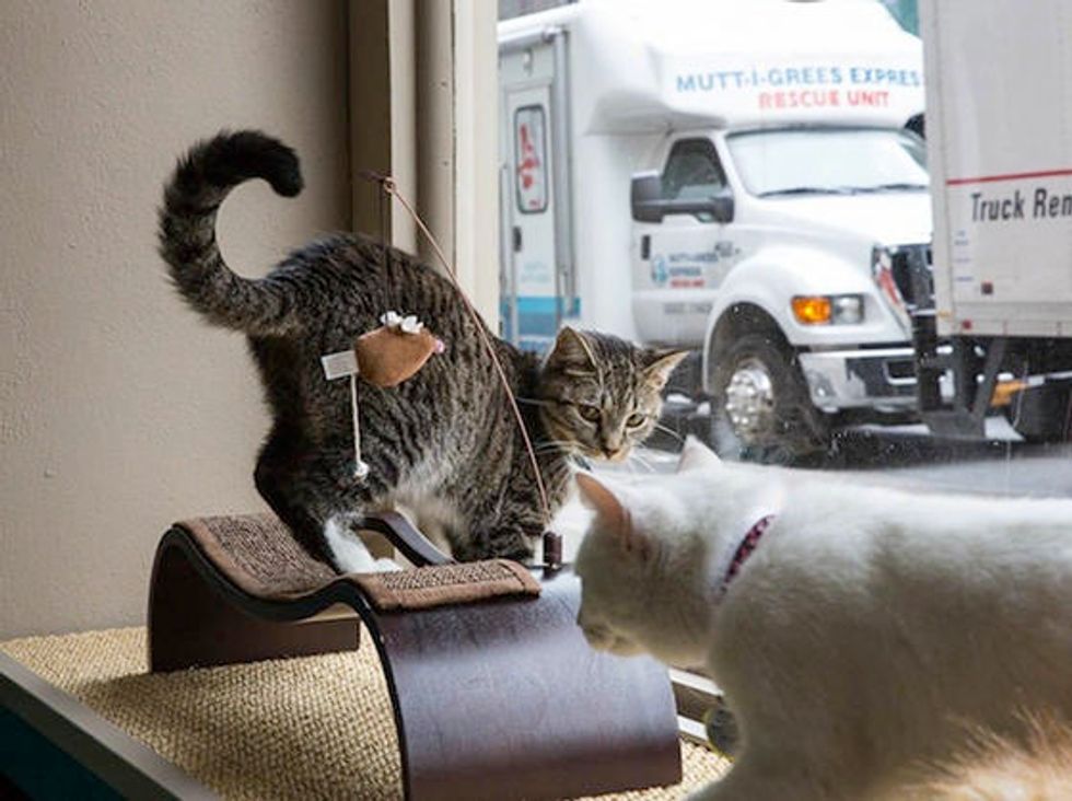 North Shore Animal League, one of the largest no-kill shelters in America is teaming up with Purina One in this exciting project, bringing urbanites the purrfect way to sip on a cup of coffee (try cat'achino) while helping these animals find their forever loving homes.