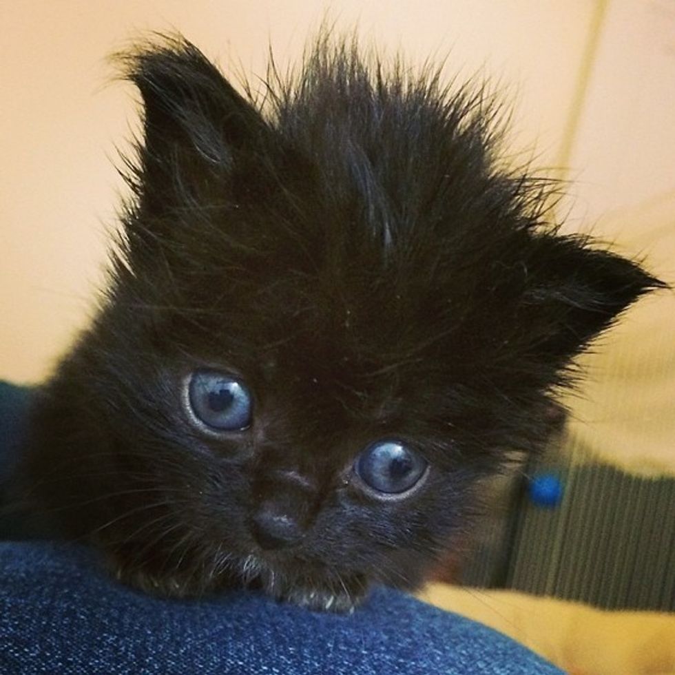 Meet Gatsby the little black panther. He is one of the rescue kittens from Purrfect Pals. Some people say that black cats don't take good pictures. Well, just look at Gatsby. Aren't these pictures absolutely adorable?