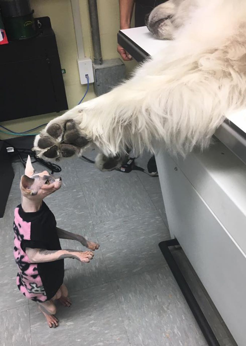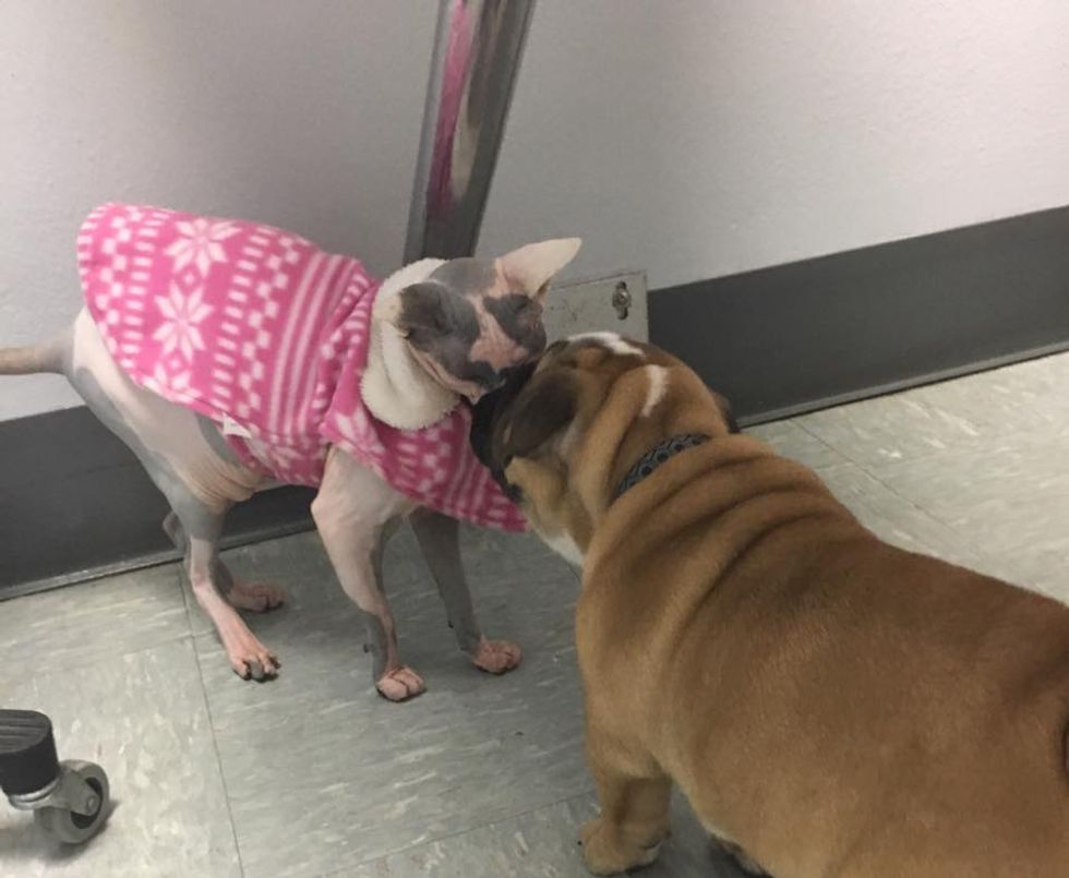 The adorable Sphynx has become the Clinic Mascot and people love to come and meet her.