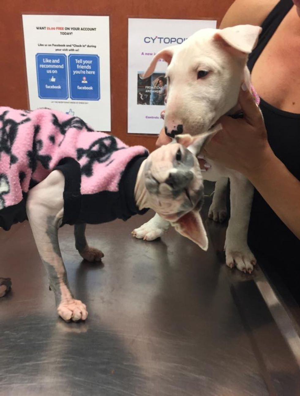Raisin has a few favorite patients... one of them is blind pitbull.