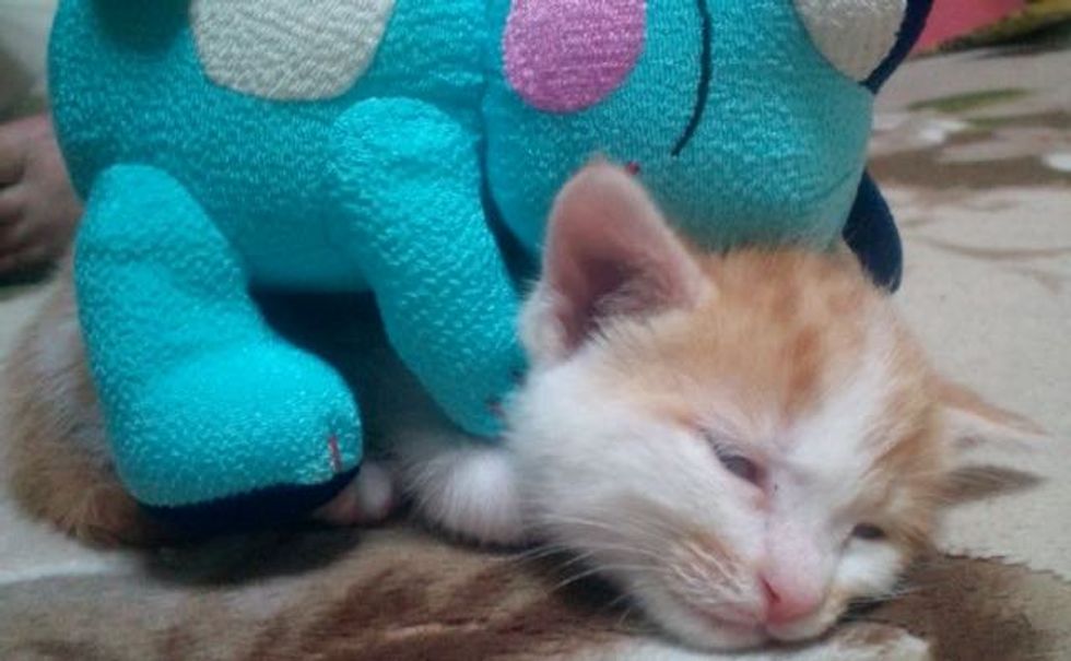 His eyes hadn't even opened when he came to his forever home. Watch this little buddy grow...