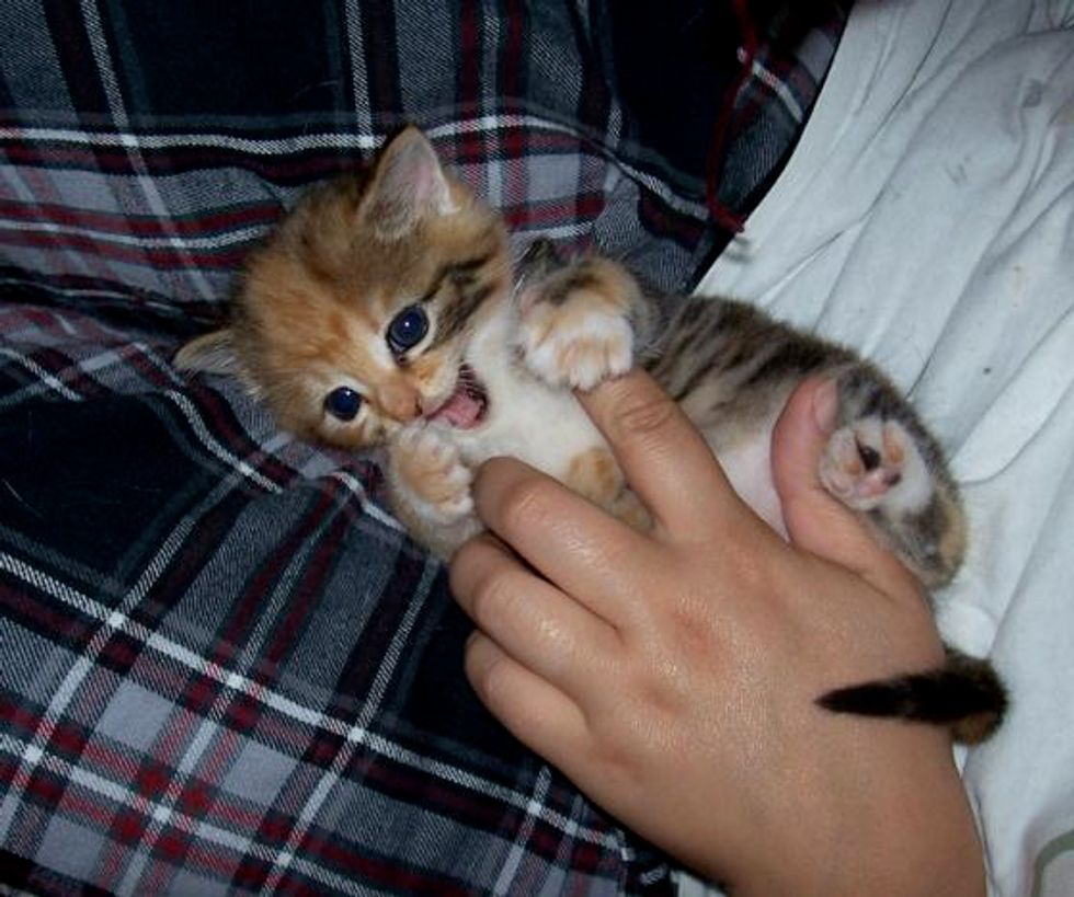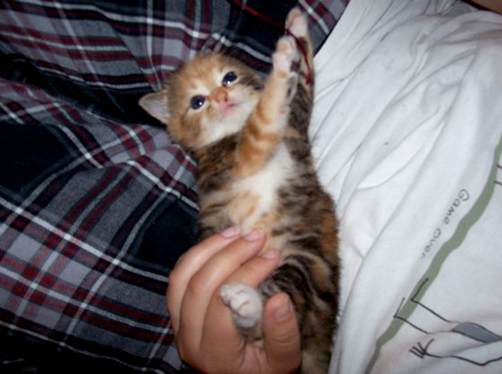 Meet Peanut. She was found abandoned in the dangerous outdoors. The little calico was hungry, cold and dirty. Nate C. couldn't bear seeing her be left alone and bring her into his home. He cleaned her up, fed her and gave her the TLC that she desperately needed.