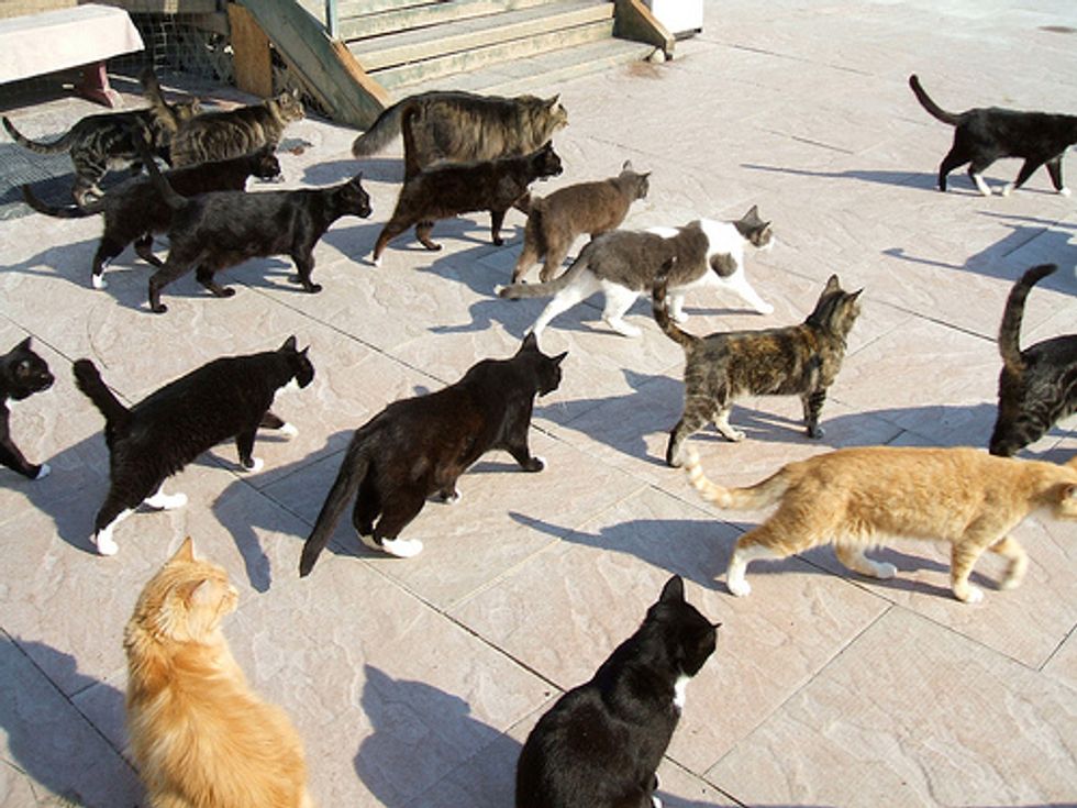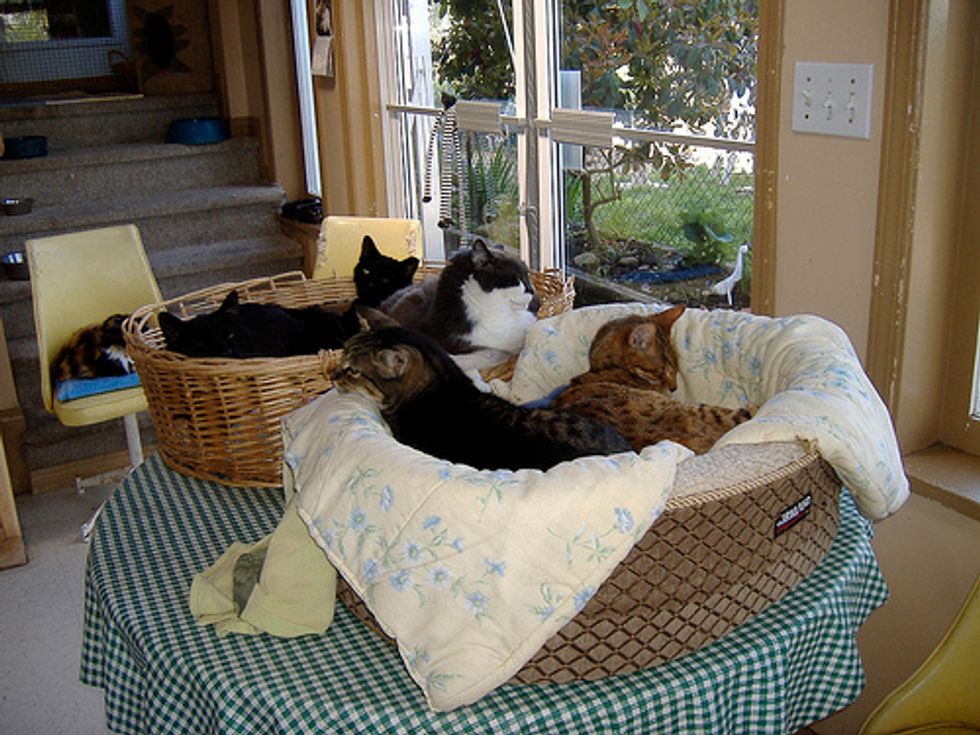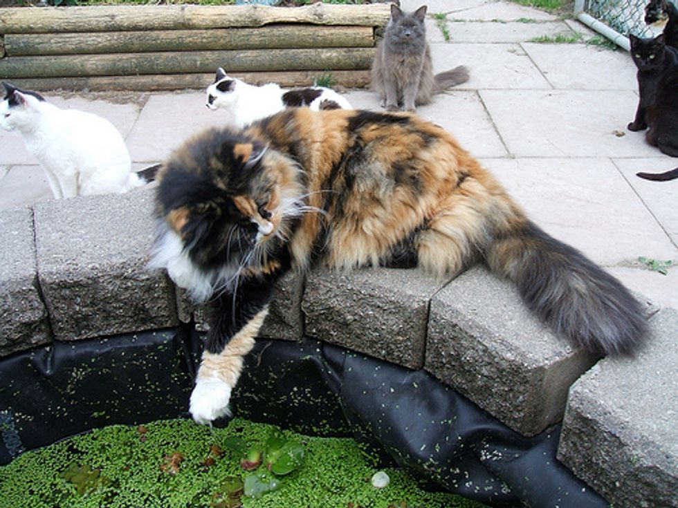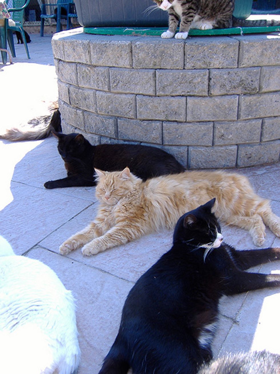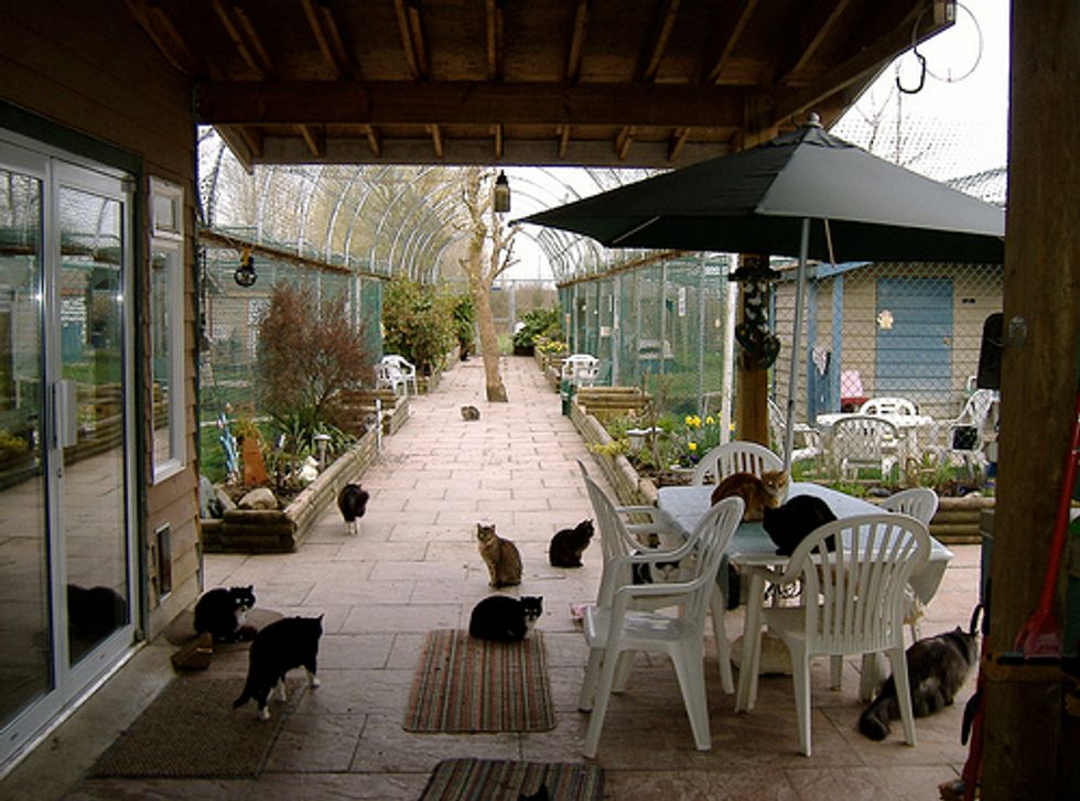 The cat sanctuary provides a comfortable and safe permanent home for more than 800 animals. Cats can freely roam in a fully fenced backyard and lounge comfortably by the well, on a deck, on a bench or simply on the ground. The cat sanctuary is like a paradise to so many formerly homeless kitties. Volunteers have created a loving, cozy and stimulating environment that is truly a home for the animals.