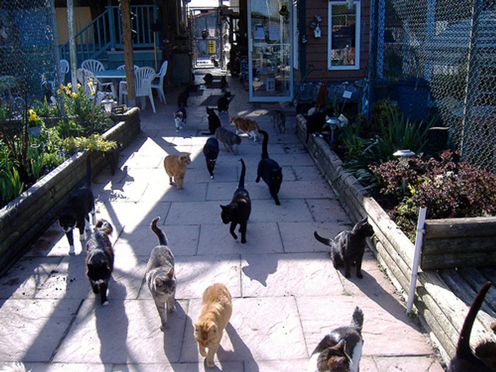 Richmond Animal Protection Society in British Columbia, Canada has a beautiful cat sanctuary that homes hundreds of cats rescued on city streets, in alleys and industrial areas. The organization was founded by a group of cat lovers back in 1989. They trapped cats, spaying and neutering them, and providing veterinary care.